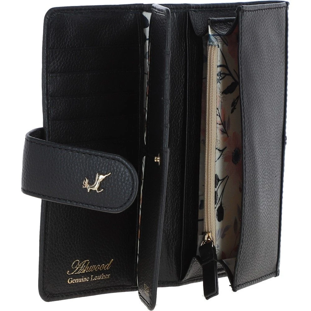 14 Card RFID Protected Large Leather Purse Black: J-53