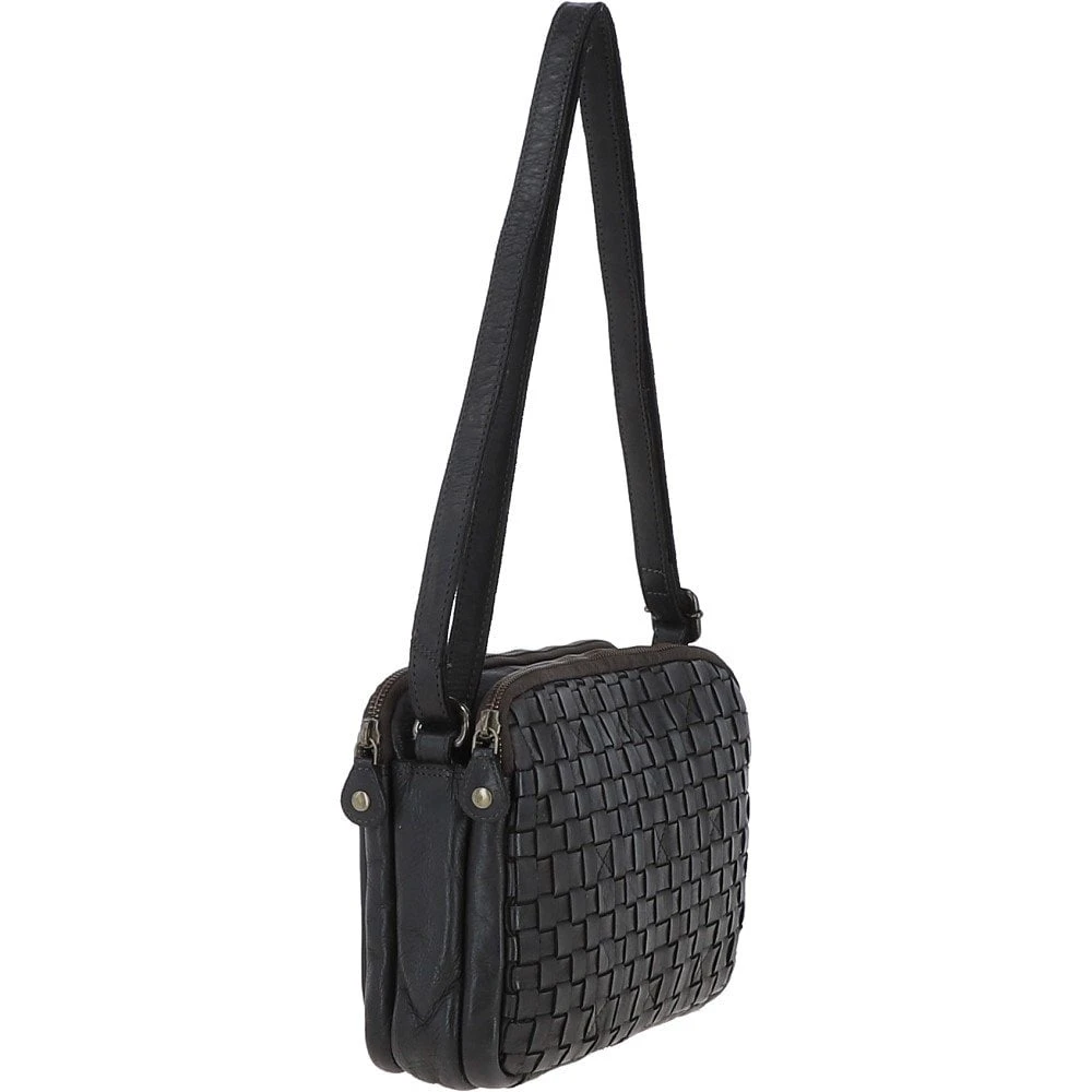 3 Section Vintage Woven Leather Shoulder Bag : D-71