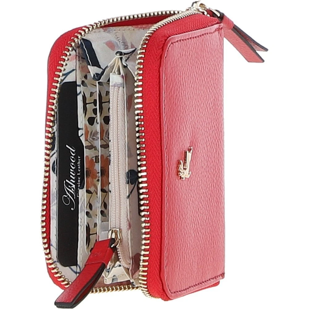6 Card RFID Protected Zip Around Leather Purse Poppy Red: S-5
