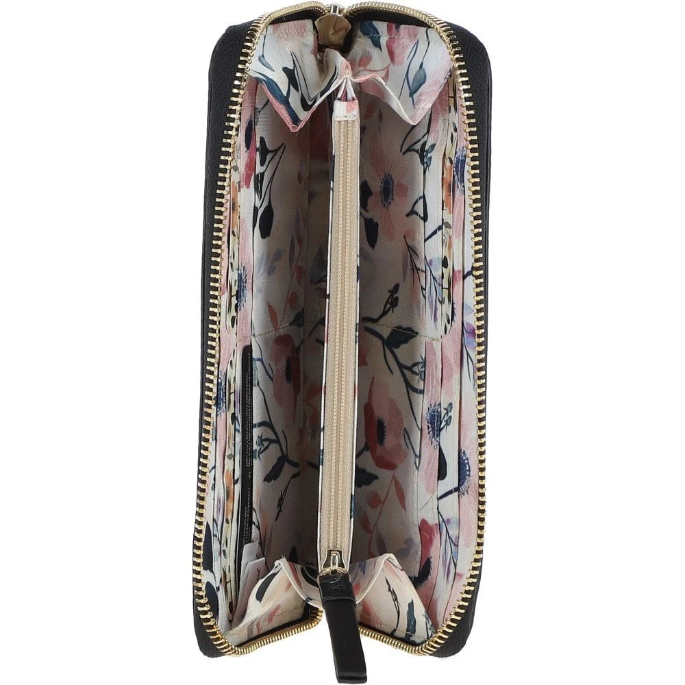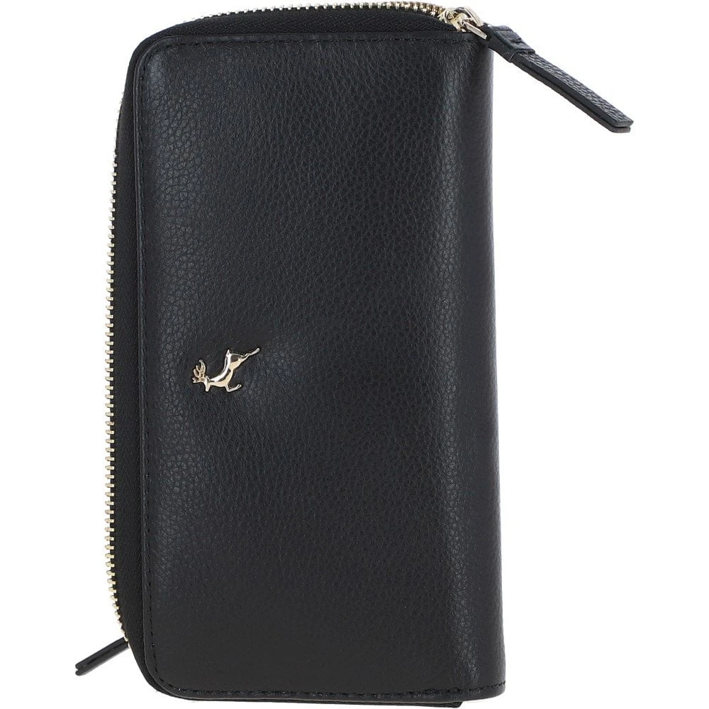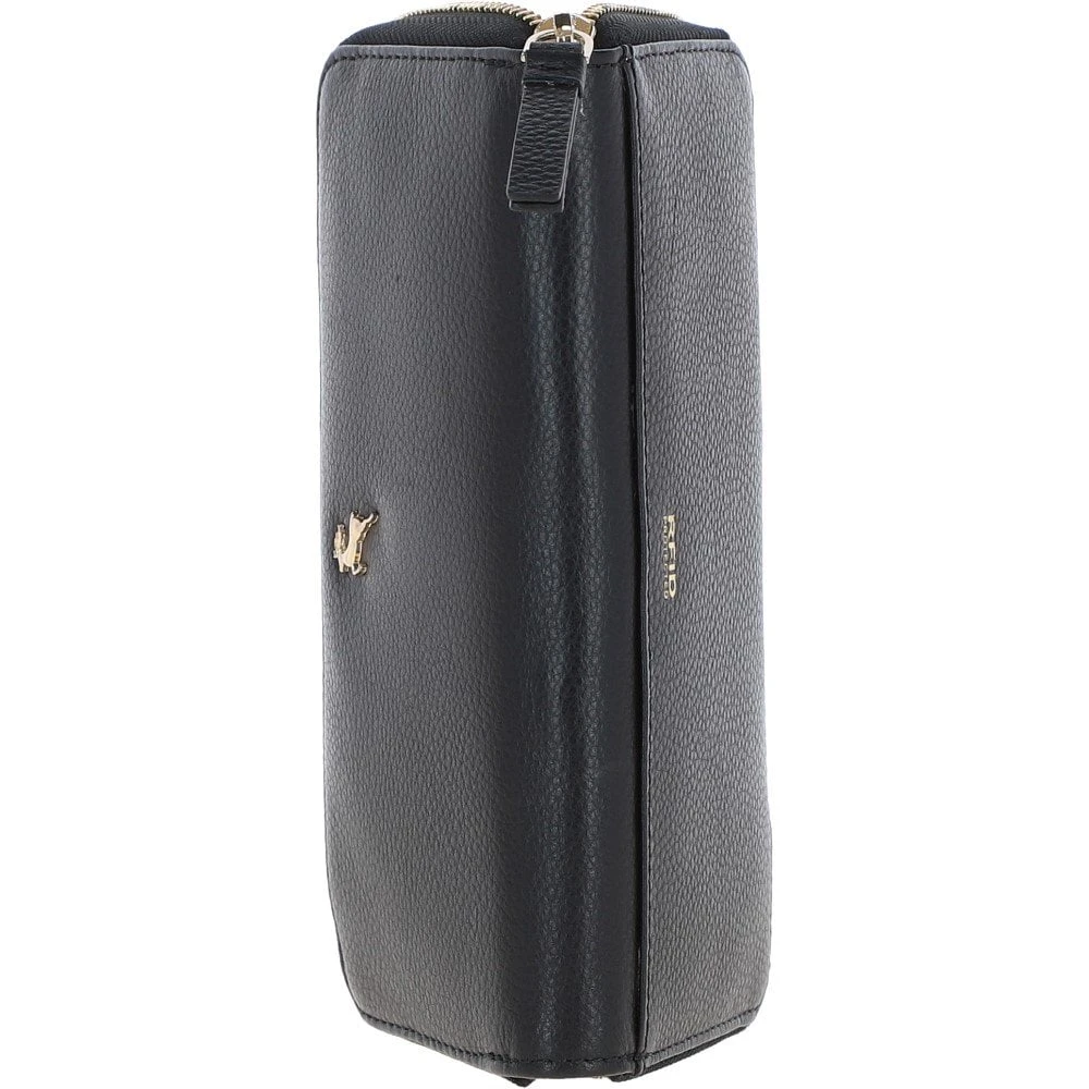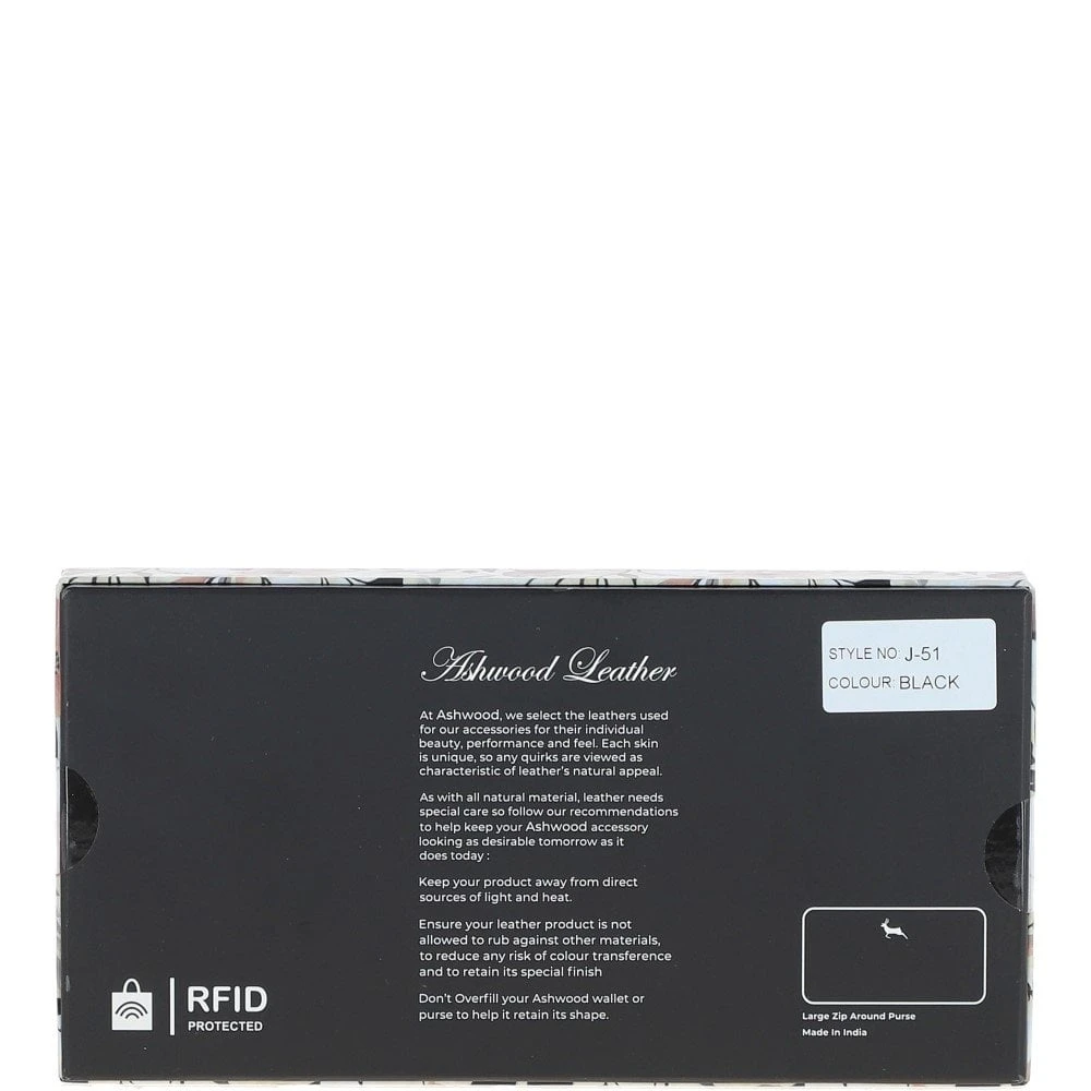 8 Card Zip Around RFID Protected Large Leather Purse Black: J-51