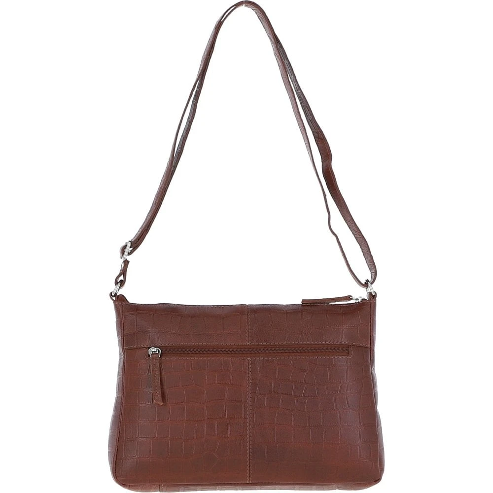 Designed with clean lines with a boxy silhouette, this croc print leather shoulder bag combines versatility with on trend luxury styling. Two handy pockets for all your essentials can be found on the external body. Open to find an internal zip pocket and two leather trimmed pockets.
