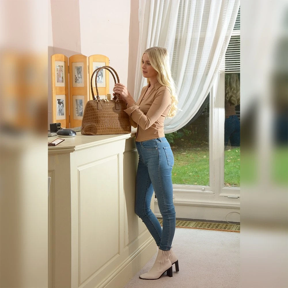 A beautiful to touch croc print leather hold-all bag that will serve the shopper, commuter, or workplace with style and luxury.