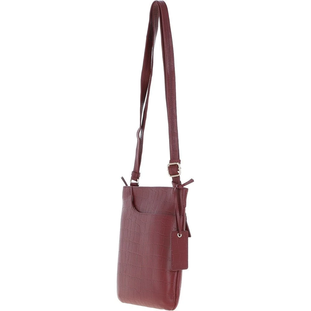 Ashwood Curve Zip Top Leather Cross Body Bag Burgundy/Croc: CURVE