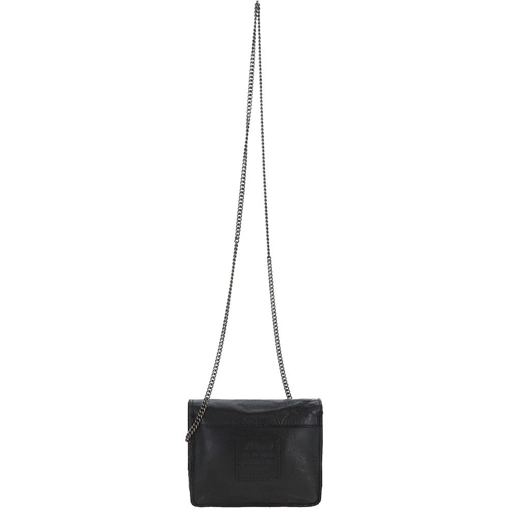 Dipped Leather Cross Body Bag With Chain Strap Black: R-11