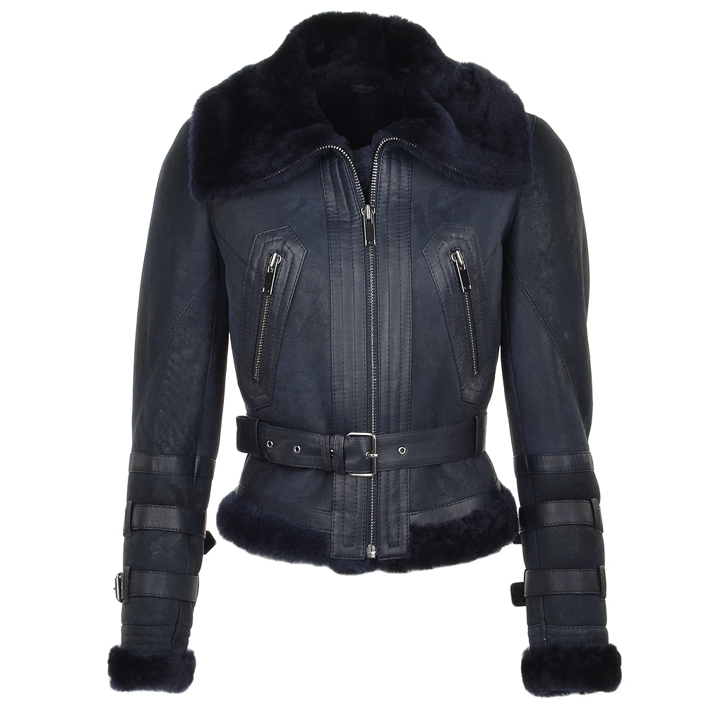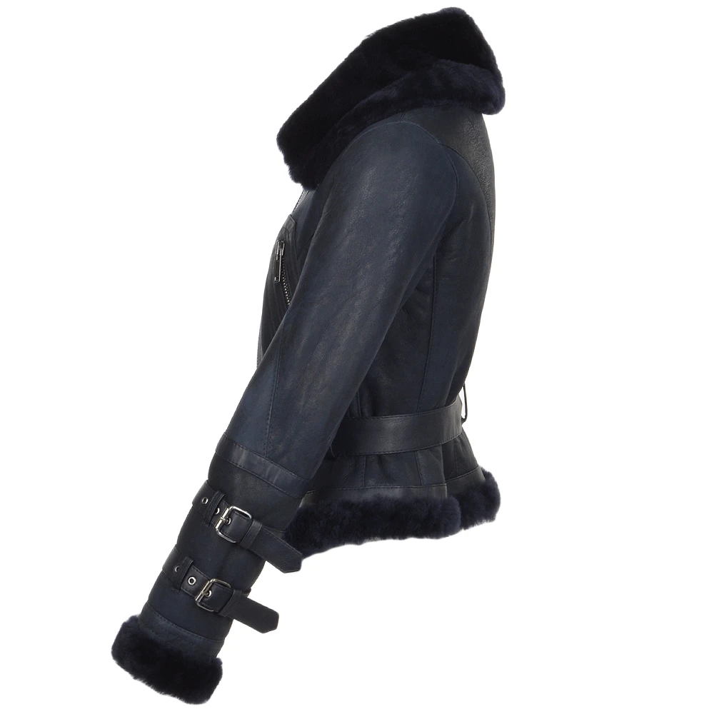 Fitted Sheepskin Aviator Flying Jacket Navy: Winnipeg