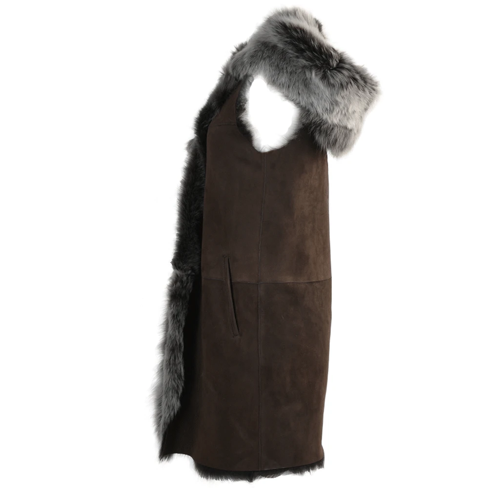 Womens Hooded Long Suede Toscana Gilet : Mariana