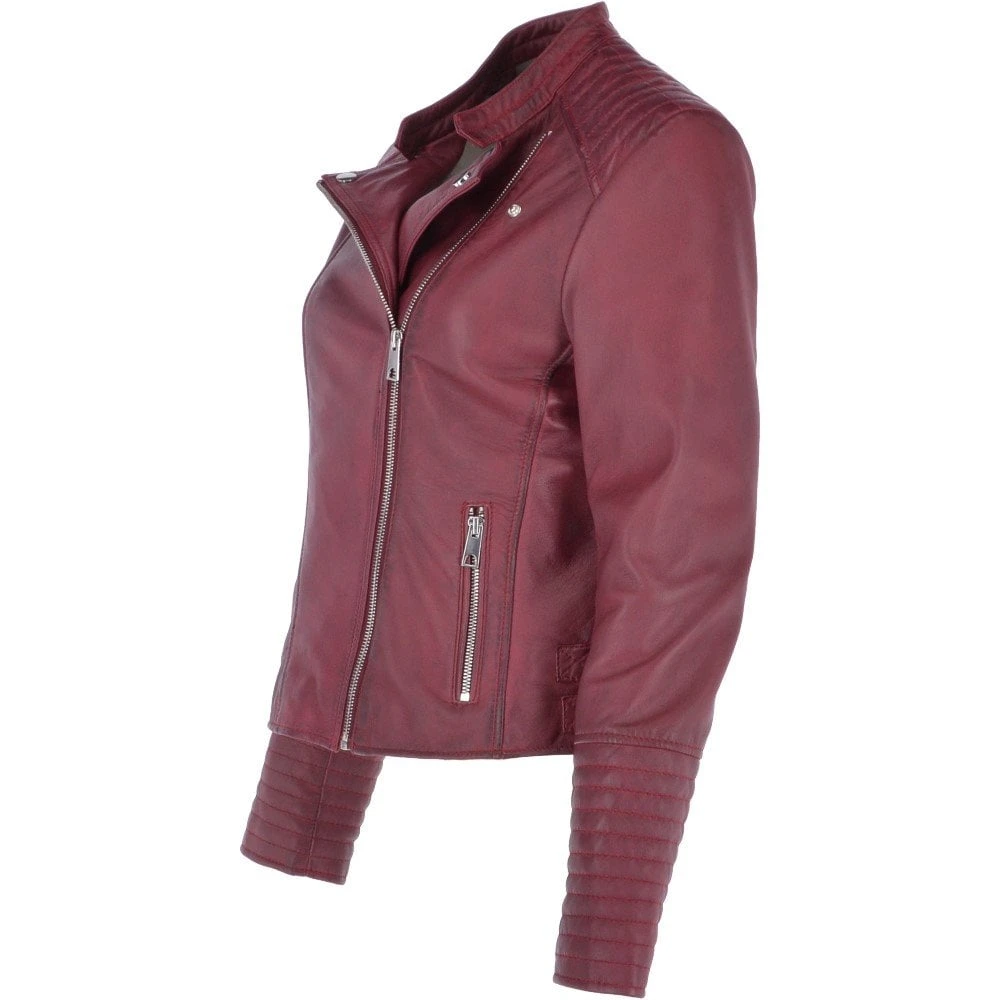 Ladies Leather Biker Jacket Bordeaux: Casey