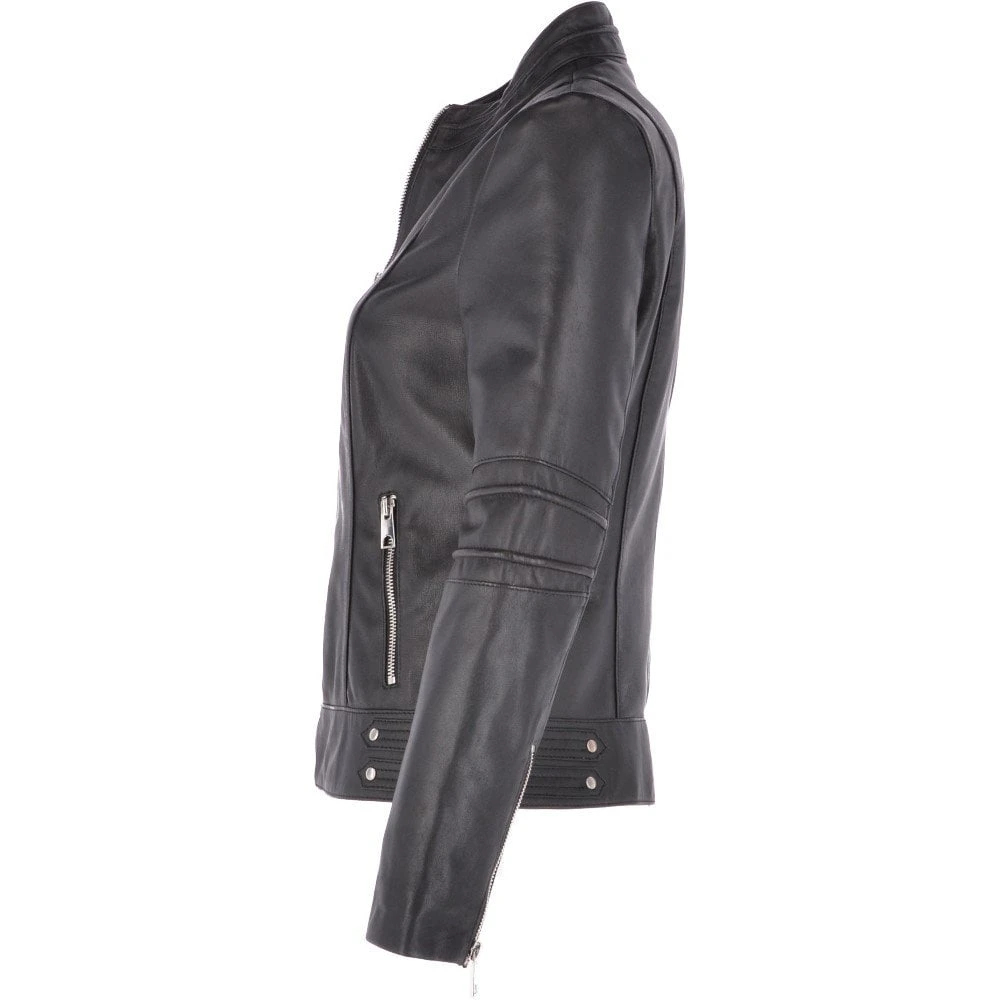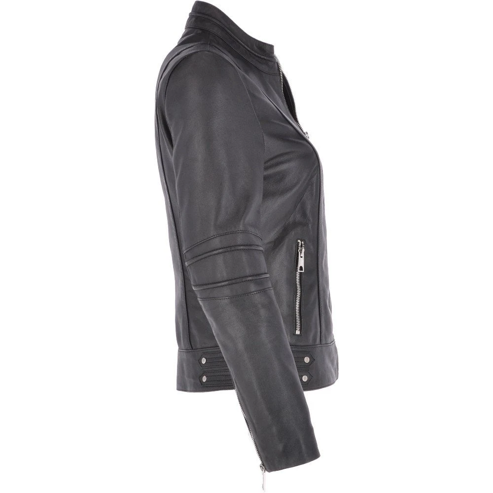 Handcrafted modern biker jacket in a soft buttery leather. With its simple clean lines, biker detailing, timeless styling, complete with a hand rubbed finish. The Lillian ladies leather jacket is a must have for any woman looking for a wearable modern biker style jacket which can be worn with any type of apparel.