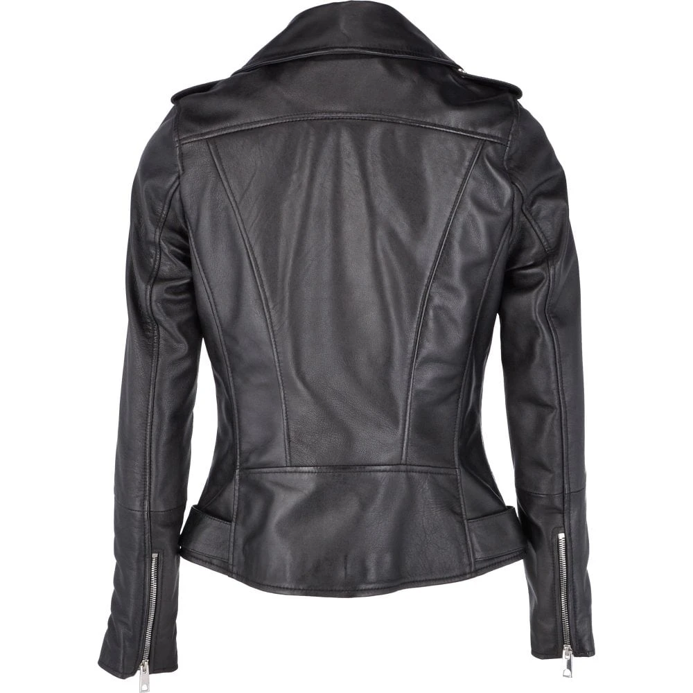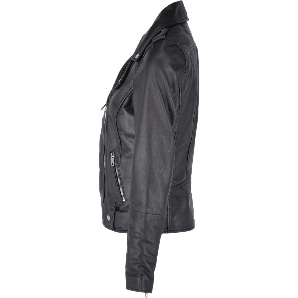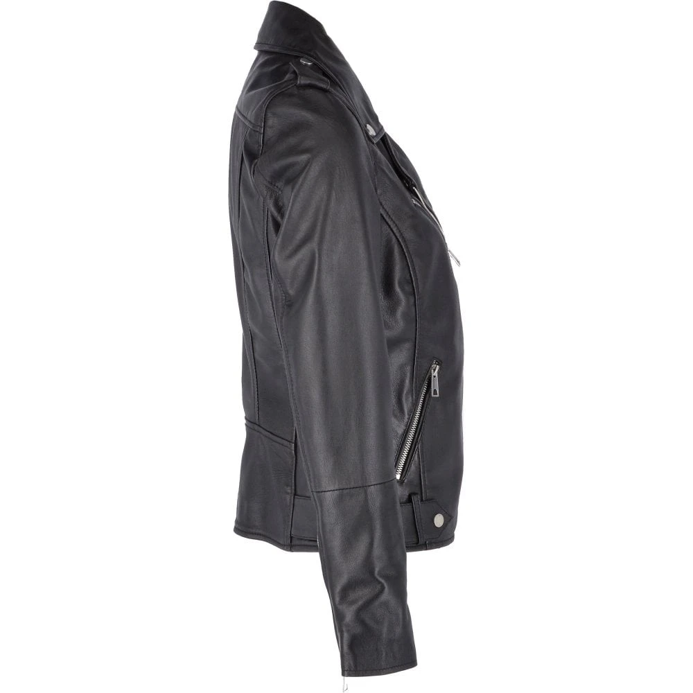 Embodying the biker ideals of anarchy and adventure, this black ladies leather jacket from Ashwood features modern fashion detail, classic biker detailing and traditional sleeves with biker zips. Crafted from quality hides, with a vintage wash and hand waxed effect for a buttery soft leather finish. This stylish ladies leather jacket will add vintage character and a rebellious edge to any look.