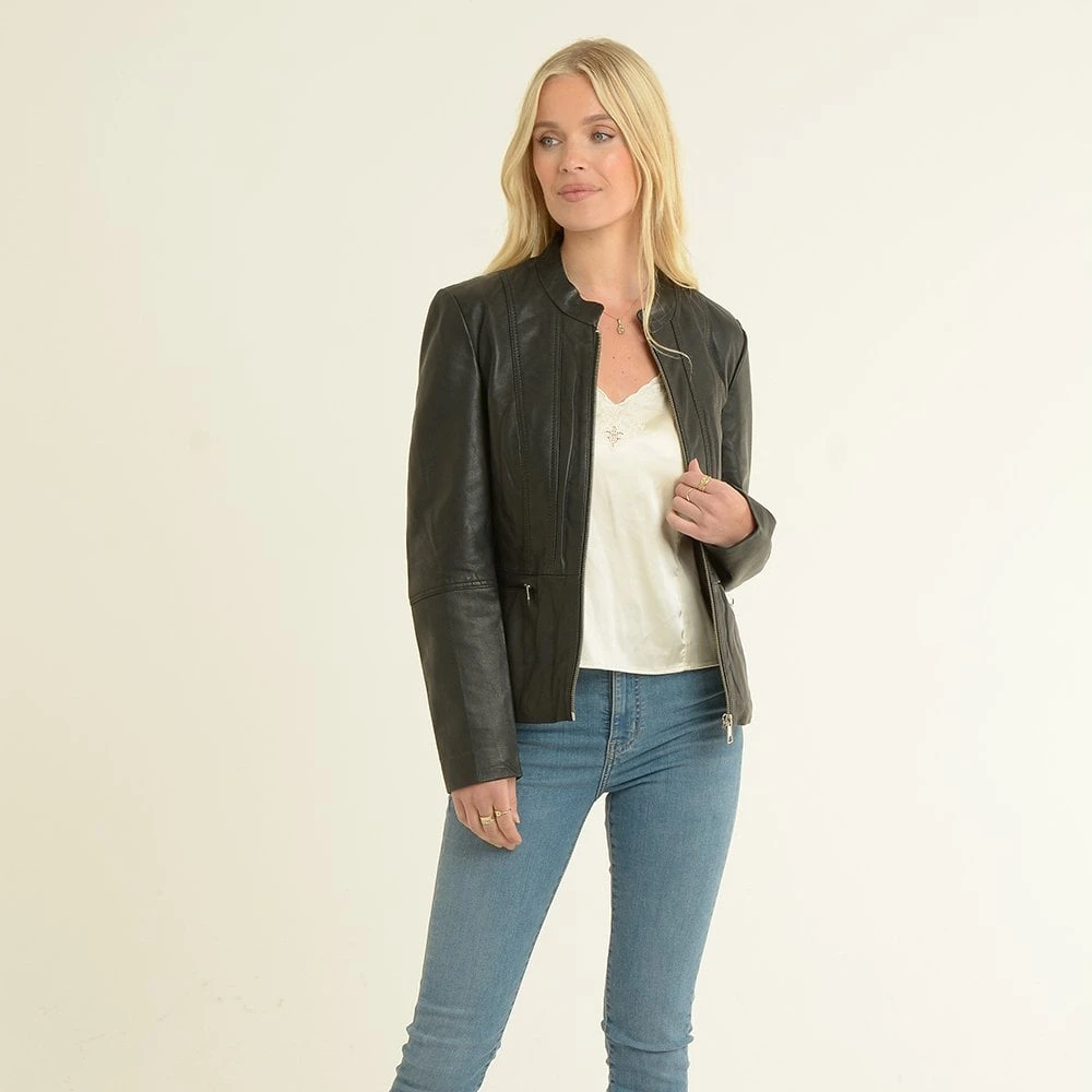 Women’s Leather Biker Jacket Black: Sheena