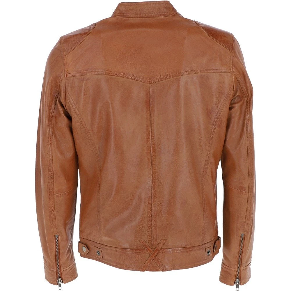 Brampton Mens Leather Biker Jacket Tan: Hartside | Coats And Jackets By Leather Company
