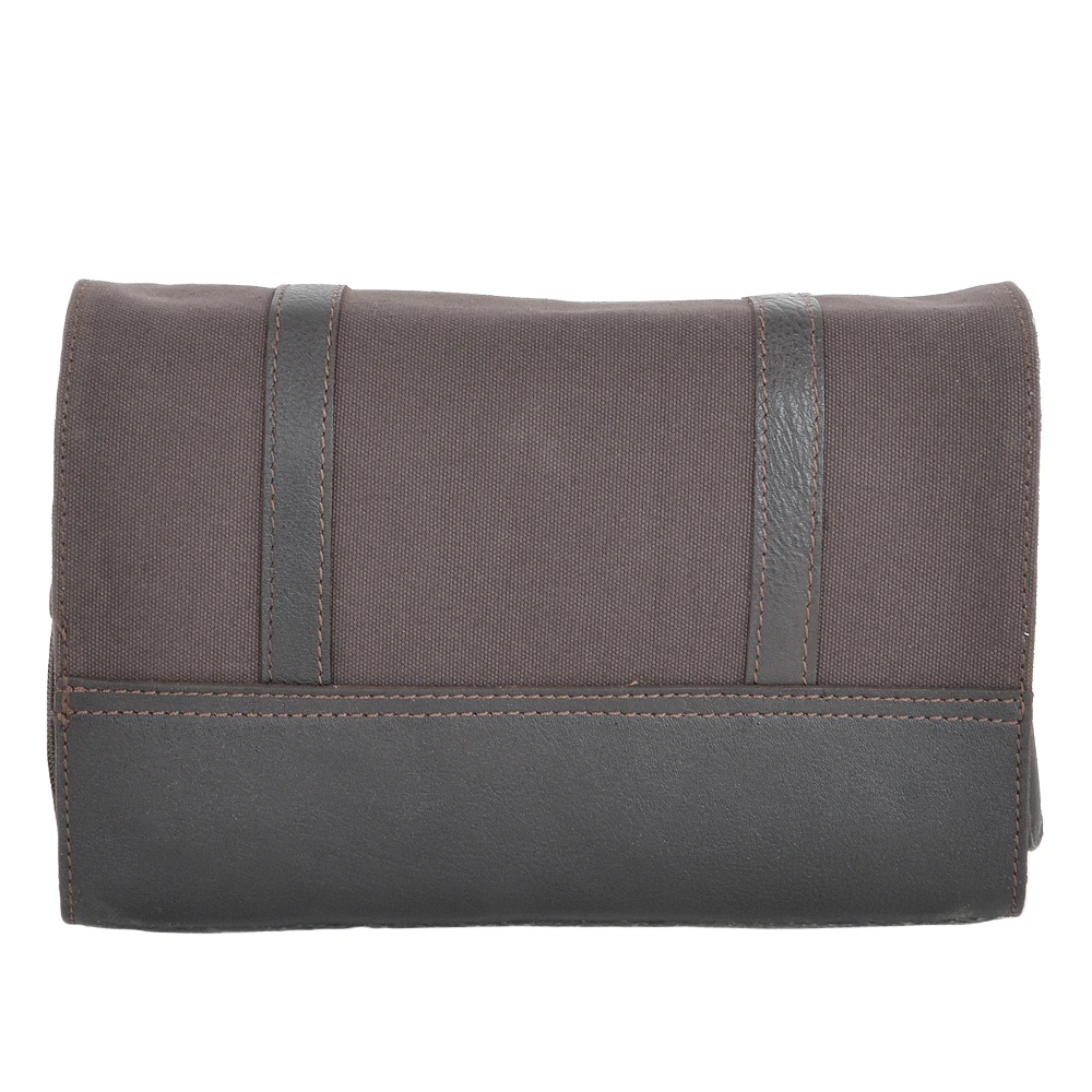 A stylish fusion of leather and canvas, this hanging toiletry bag from Ashwood luggage comes with a detachable wash bag for the ultimate in practicality and organisation. Complete with a hanging hook, this unfolding toiletry bag has been crafted from a durable cow mud leather that improves in appearance with time and age. High quality, heavy duty and fully functional, this toiletry bag is the perfect accessory for the organised traveler.