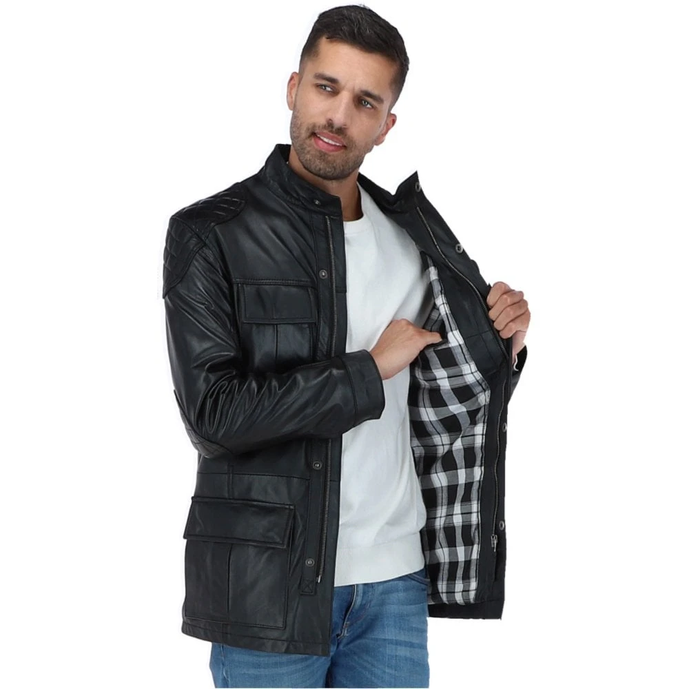 Crafted from supple leather the Brontes is designed to enhance the masculine fit for a classic biker look. A quality outer wear piece which allows you to brave the elements in a comfortable yet relaxed way. Perfect for layering over with leather pleated flap pockets for organising your essentials, the Brontes delivers on style, comes in the vintage wash and hand waxed effect or the rebel smooth black.