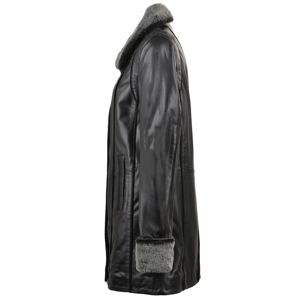 The Jacqueline has been created in mind for warmth and luxury, an all season coat. The completed design features detachable trimmings around the neck and sleeves for the all season look. Crafted with the choice in quality smooth black or brown finish. Clean leather panels finished with suede trim effects, attention to detail continued on the front pockets featuring a suede and leather trim, in beautifully crafted leather. A structured and elegant cut which serves as an excellent layering piece over apparel too.