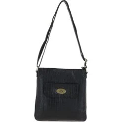 Ashwood Leather Croc Cross-Body Bag Black: L-70