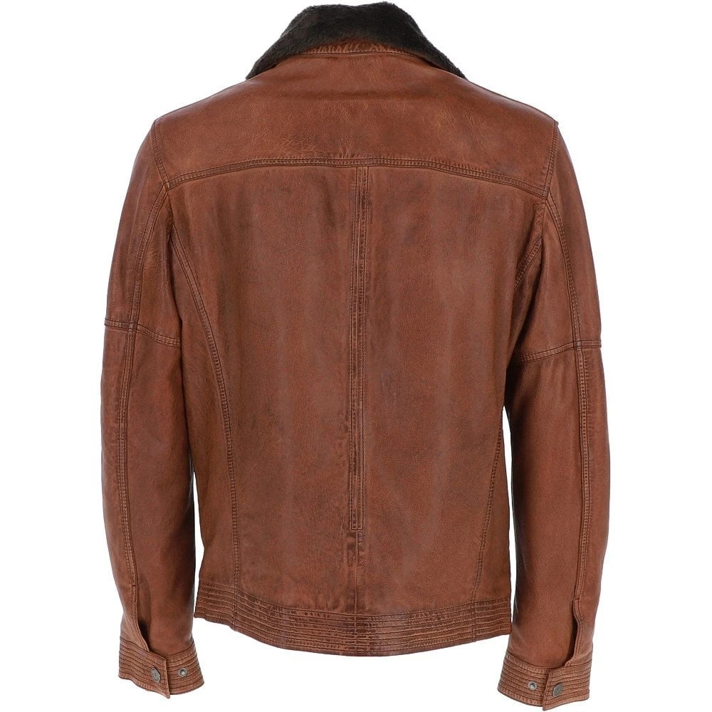 Trappers Sandor 2 leather jacket with detachable collar in cognac, will instantly elevate your wardrobe, delivering an effortless style.
