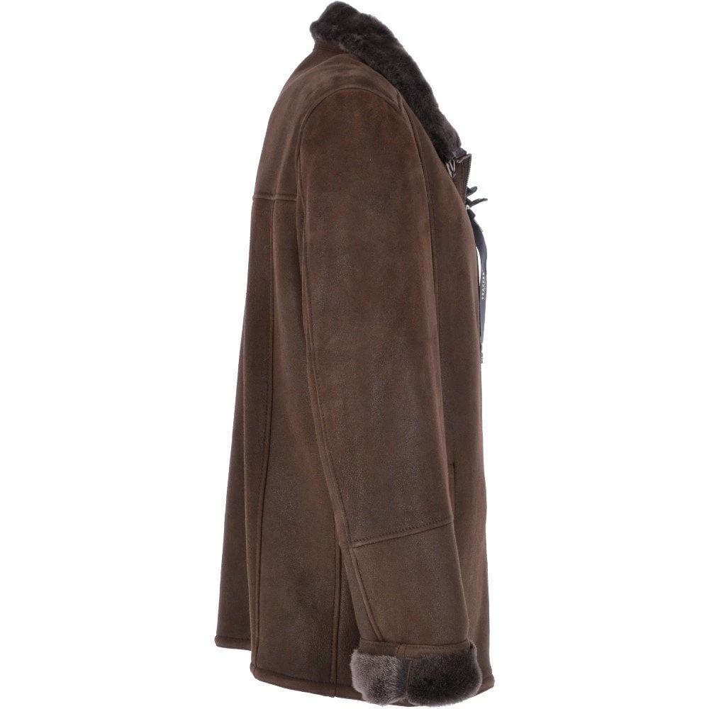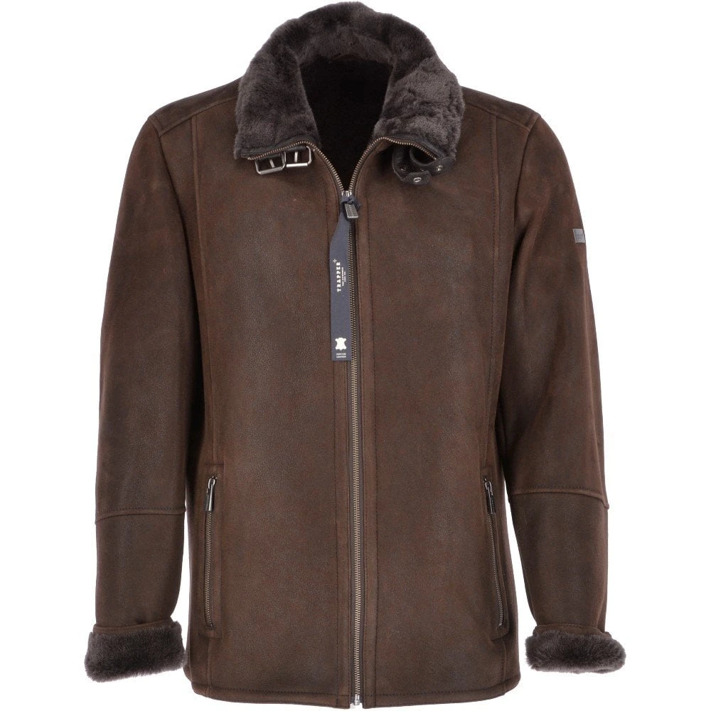 Crafted in beautiful soft sheepskin leather, with handsome clean lines. Trappers Anton leather sheepskin coat delivers an effortless quality outerwear look which allows you to brave the elements. Perfect for layering over, with two external zip pockets for organising all your essentials, two buckles and strap neck fastenings to keep you snug and warm during the winter season