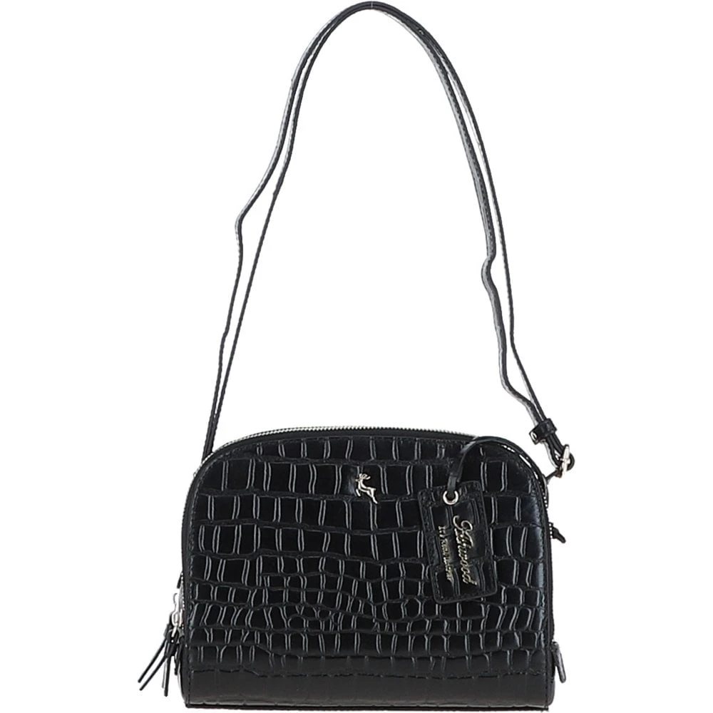 Leather Three Section Cross Body Bag Black/croc: 63789