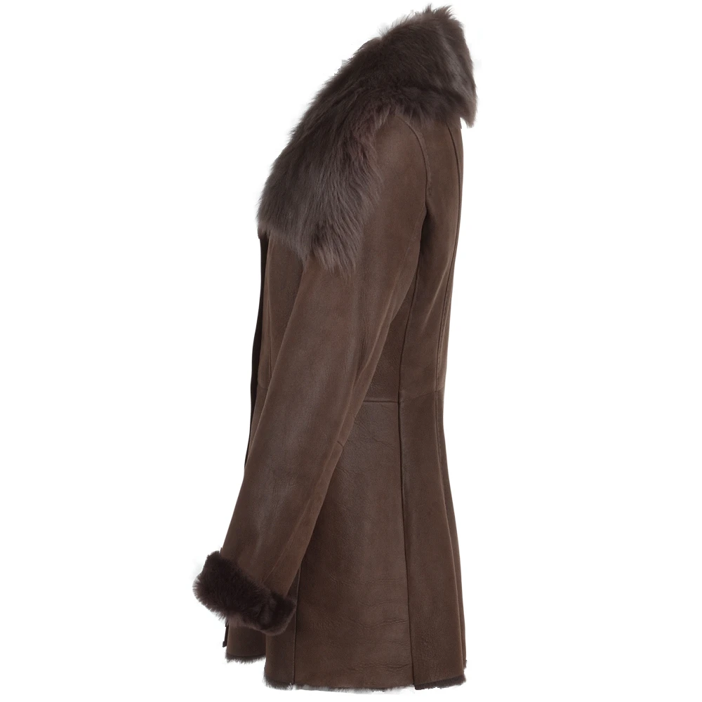 Make a statement this season with this large long-haired toscana tipped lapel coat. With a close fit to the body tailoring to allow for a perfect feminine silhouette in a beautiful sheepskin with a hand-buffed finish to create a sumptuous soft suede feel. A pure luxury wardrobe piece and ideal for keeping those cold days at bay.