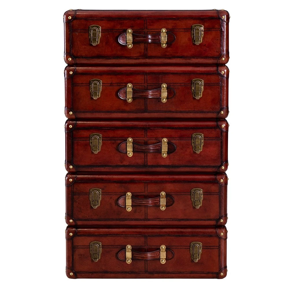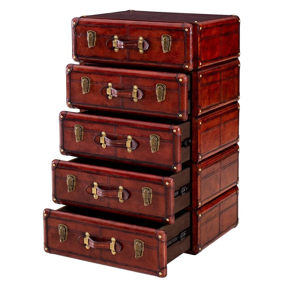 Luxury Handcrafted Leather 5 Drawer Chest Cognac: SE-1563