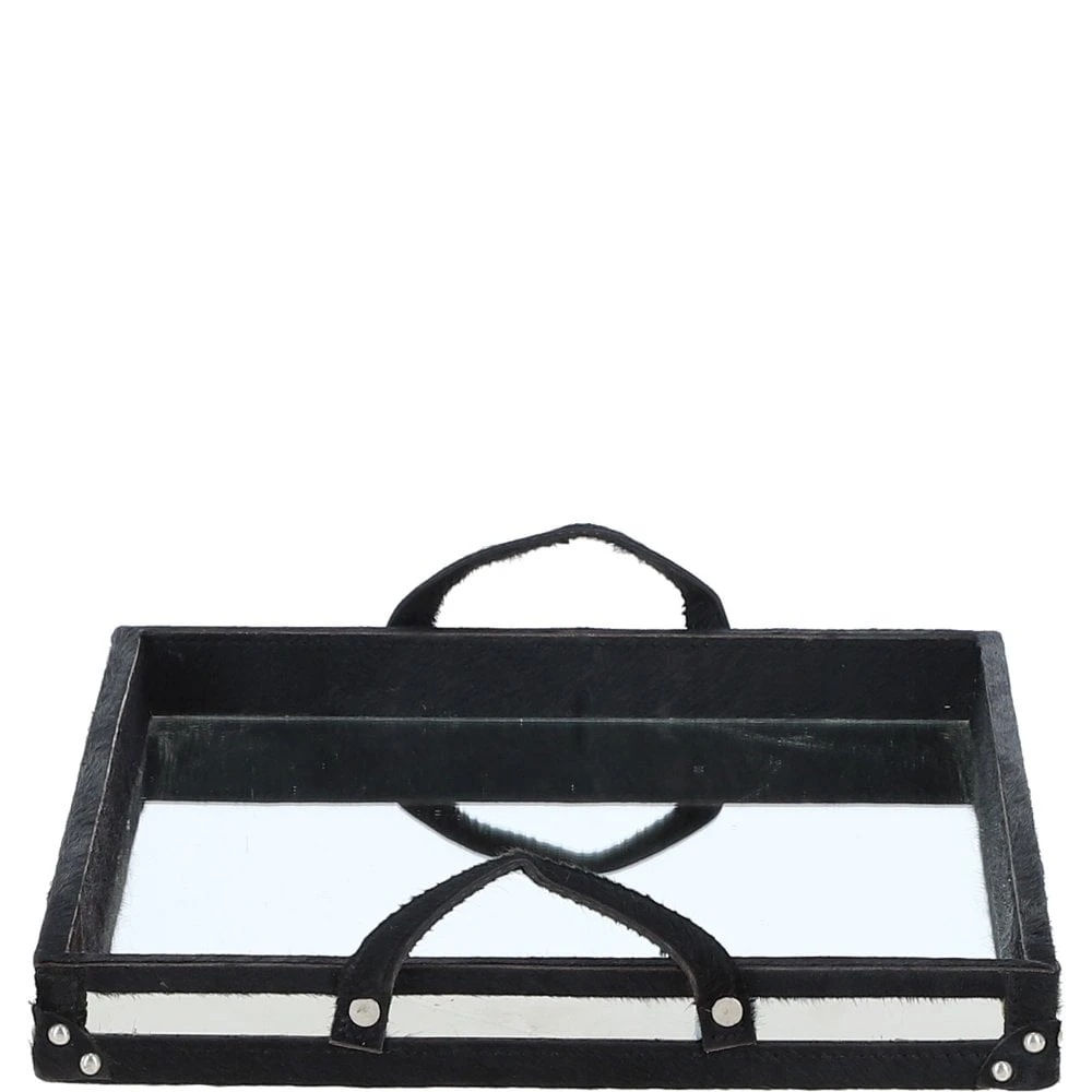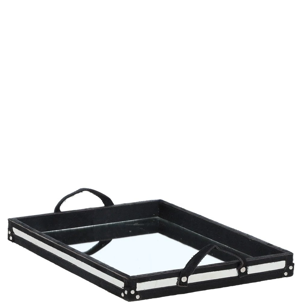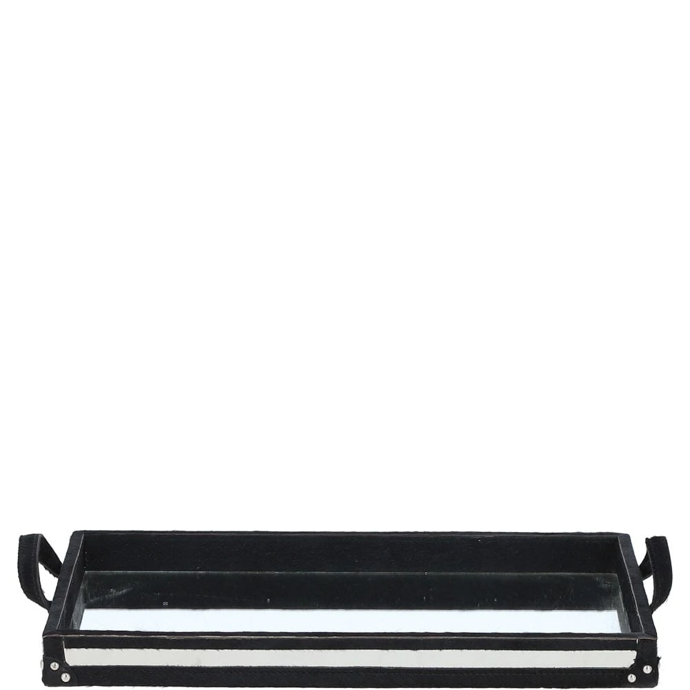 Luxury Rectangular Leather Hair-on Hide Tray Black: AGC-66