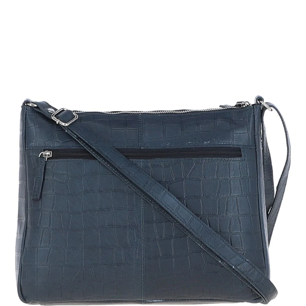 Designed with clean lines with a boxy silhouette, this croc print leather shoulder bag combines versatility with on trend luxury styling. Three handy zip pockets for all your essentials can be found on the external body. Open to find an internal zip pocket and two leather trimmed pockets.