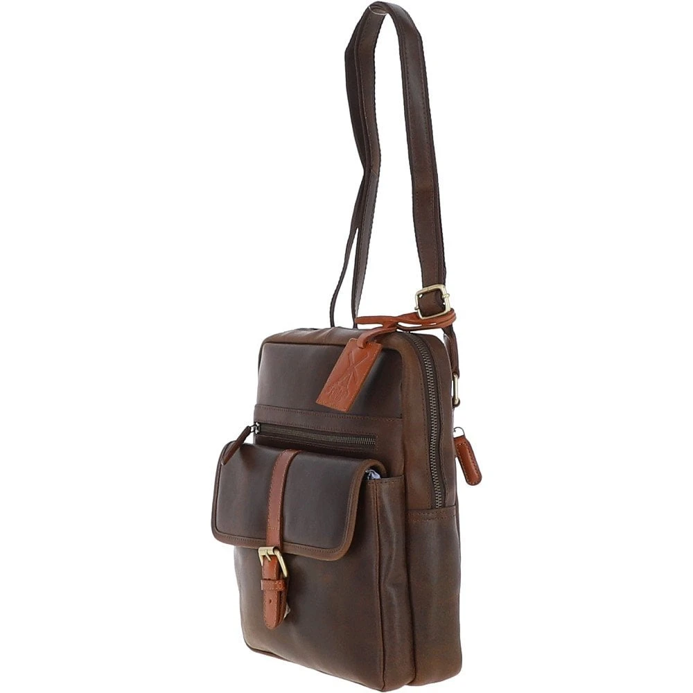 Mens Fenland Medium Cow Oily Leather Messenger Bag Brown/Tan Buff: FEN-783