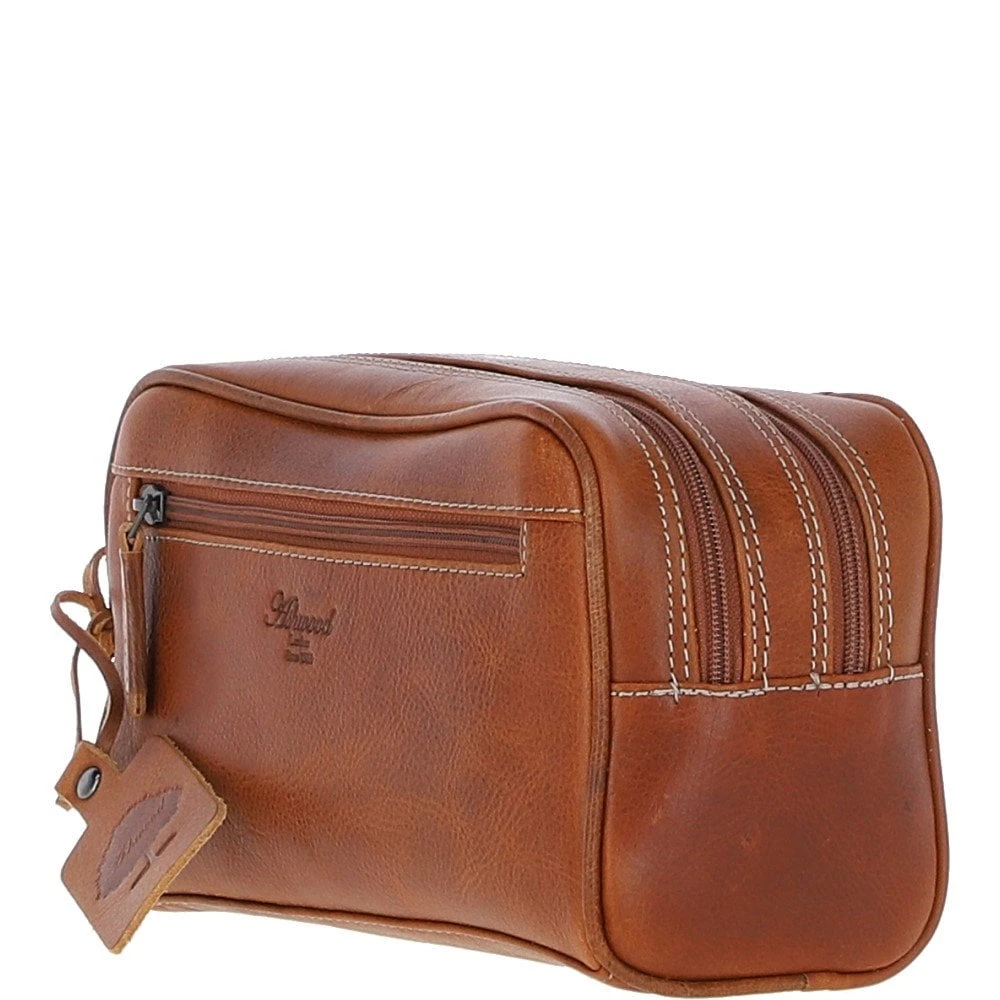 Ashwood Men’s Dual Zip Leather Washbag – Cognac: FE-09