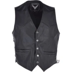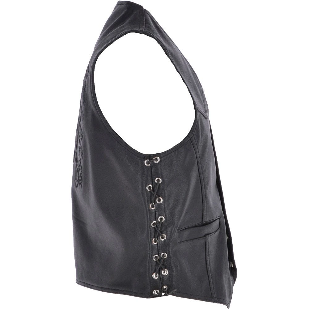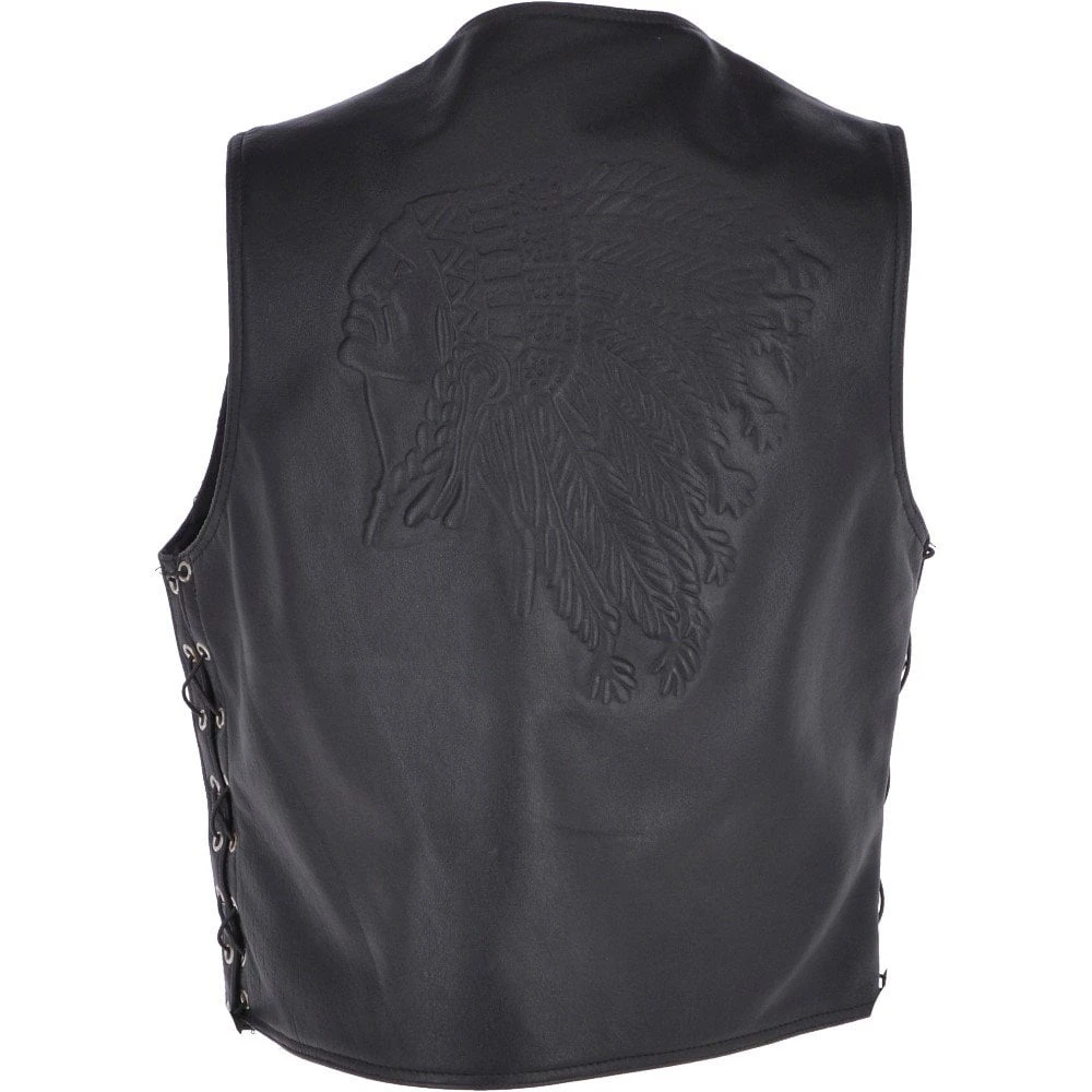 Ashwood Men’s Leather Embossed, Laced Waistcoat Black: Apache Biker Waistcoat | Motorbike Vest | Coats And Jackets By Leather Company