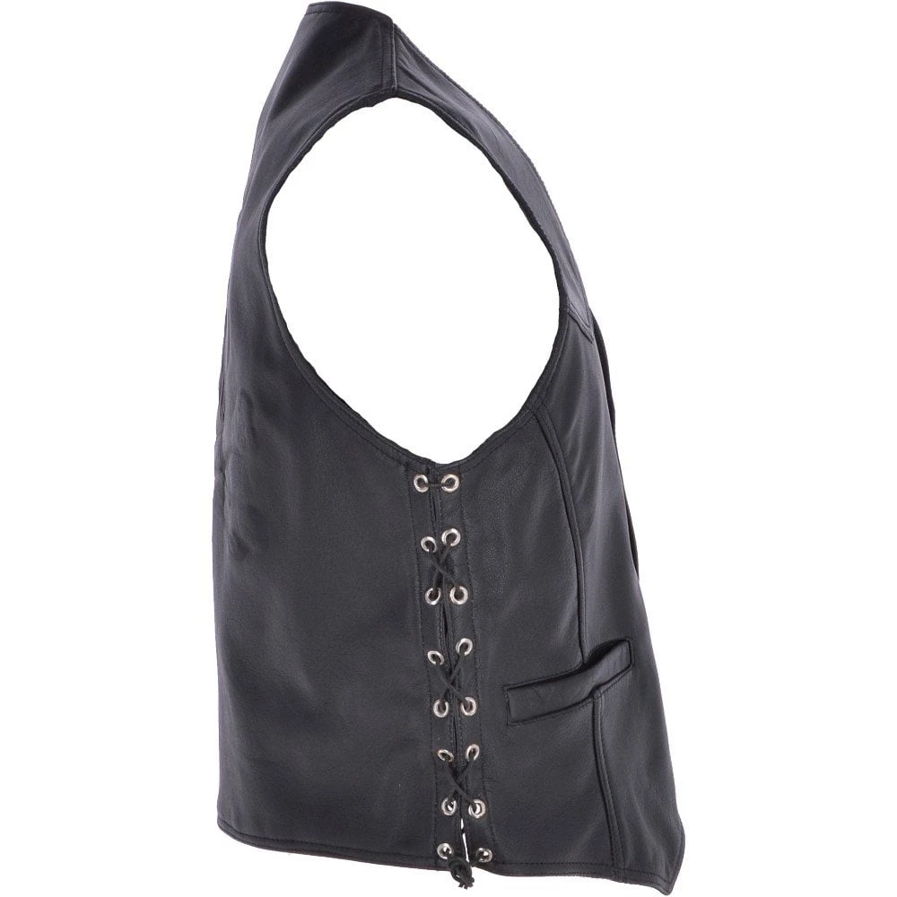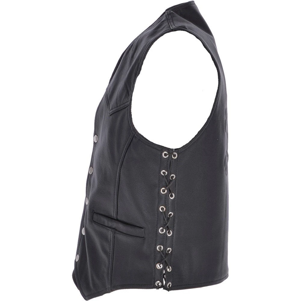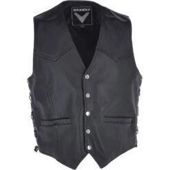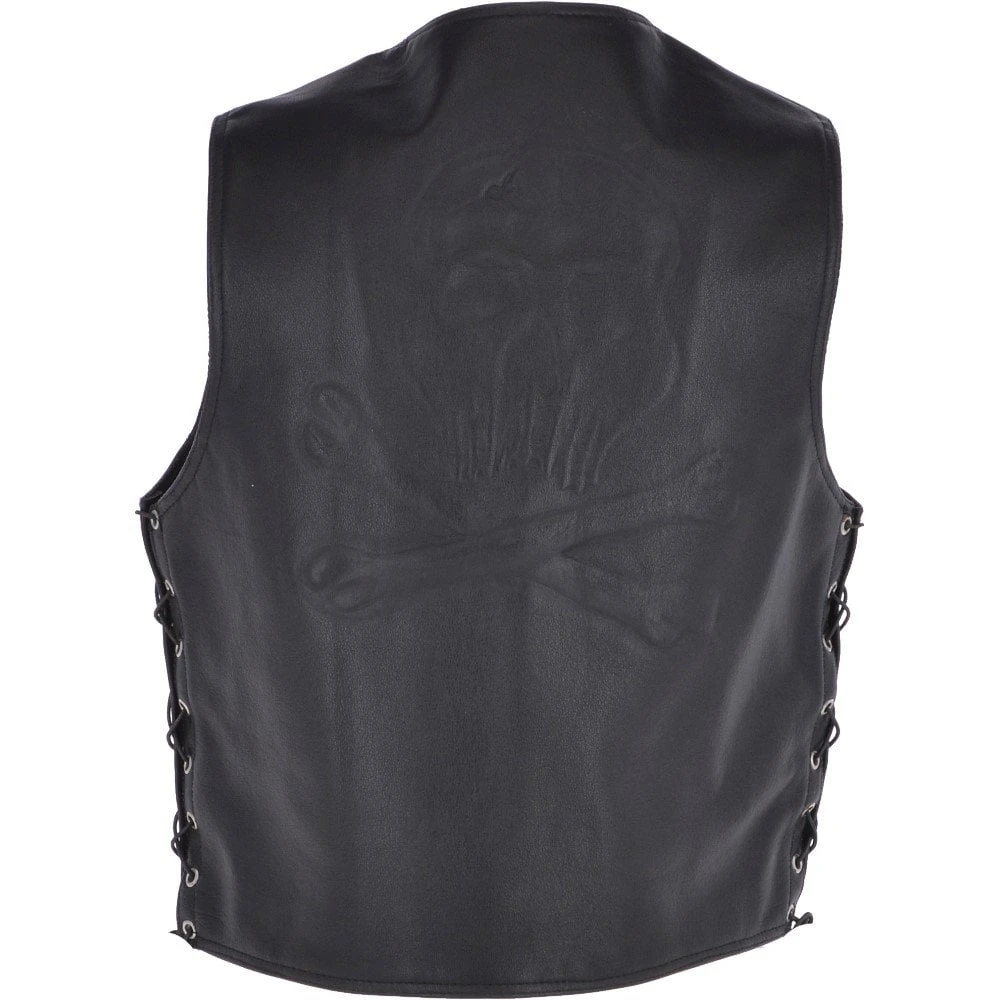 Ashwood Men’s Leather Embossed, Laced Waistcoat Black: Skull Biker Waistcoat | Motorbike Vest | Coats And Jackets By Leather Company