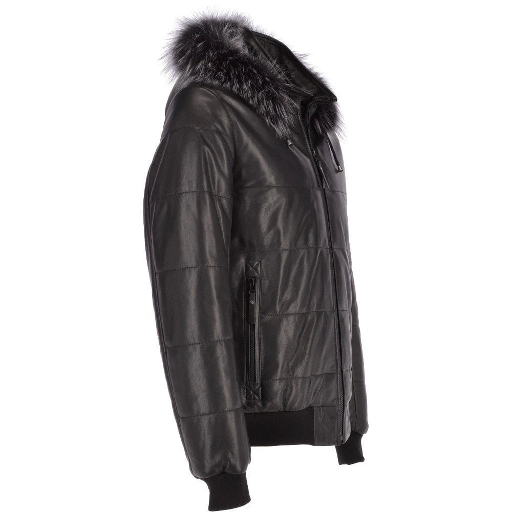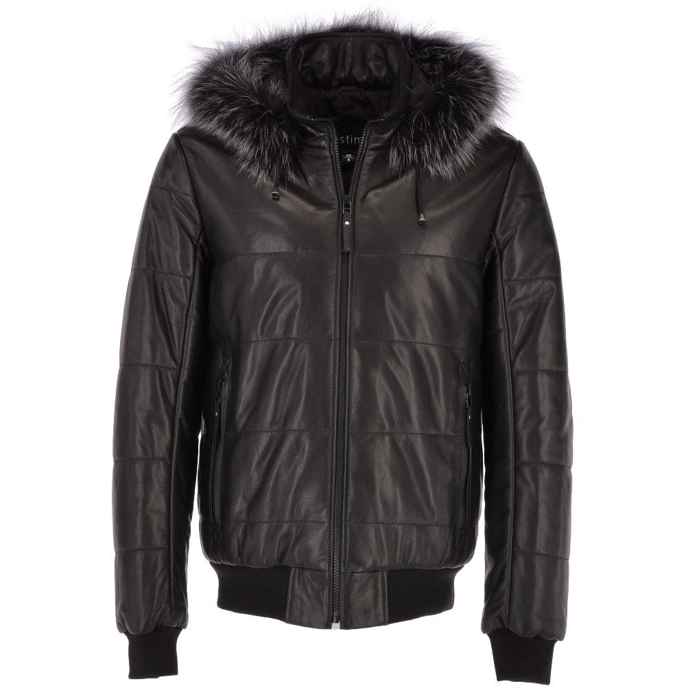 Estimo Men’s Leather Hooded Bomber Jacket: Davos | Coats And Jackets By Leather Company