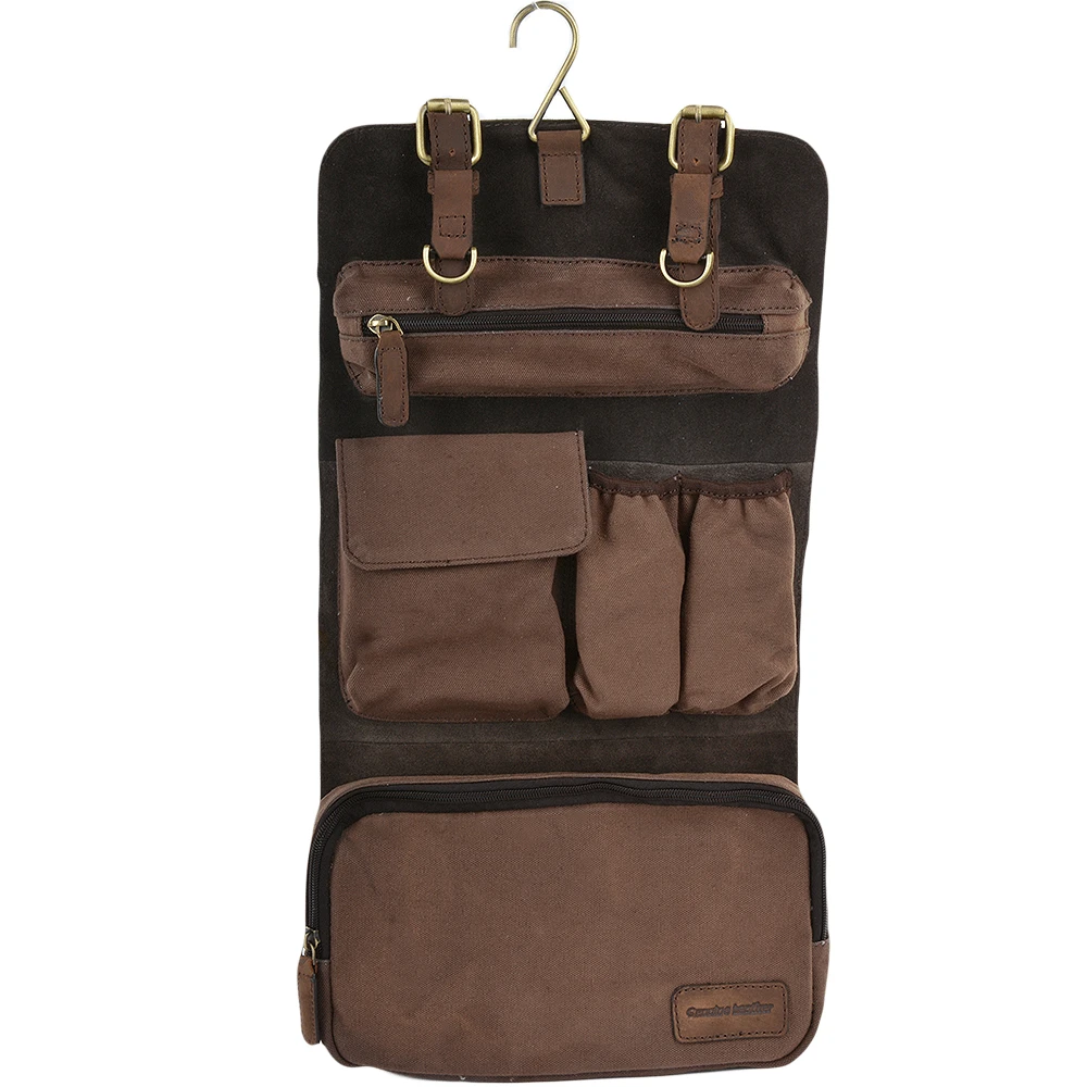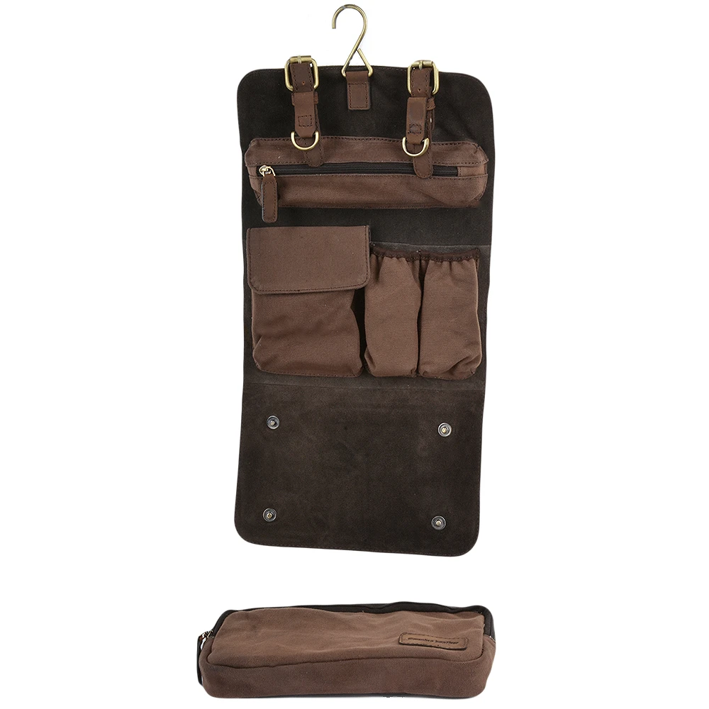 A stylish fusion of leather and canvas, this hanging toiletry bag from Ashwood luggage comes with a detachable wash bag for the ultimate in practicality and organisation. Complete with a hanging hook, this unfolding toiletry bag has been crafted from a durable cow mud leather that improves in appearance with time and age. High quality, heavy duty and fully functional, this toiletry bag is the perfect accessory for the organised traveler.