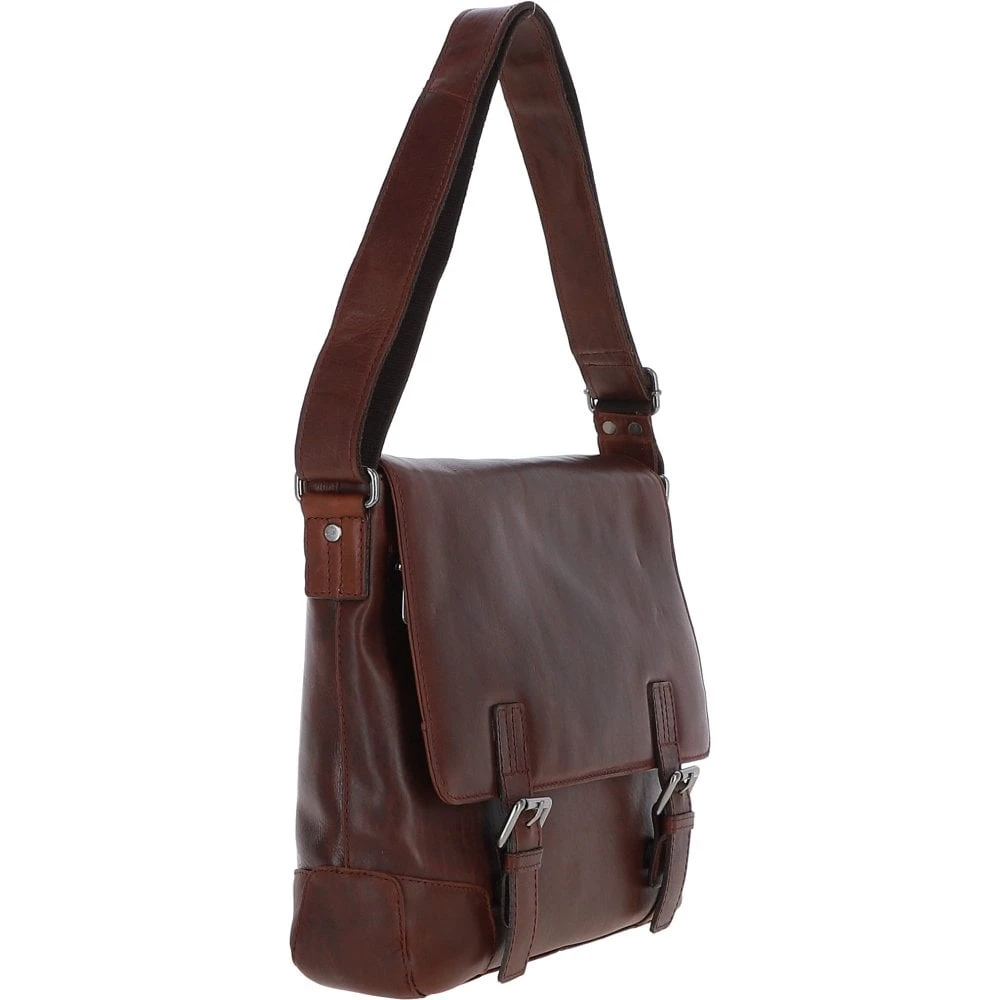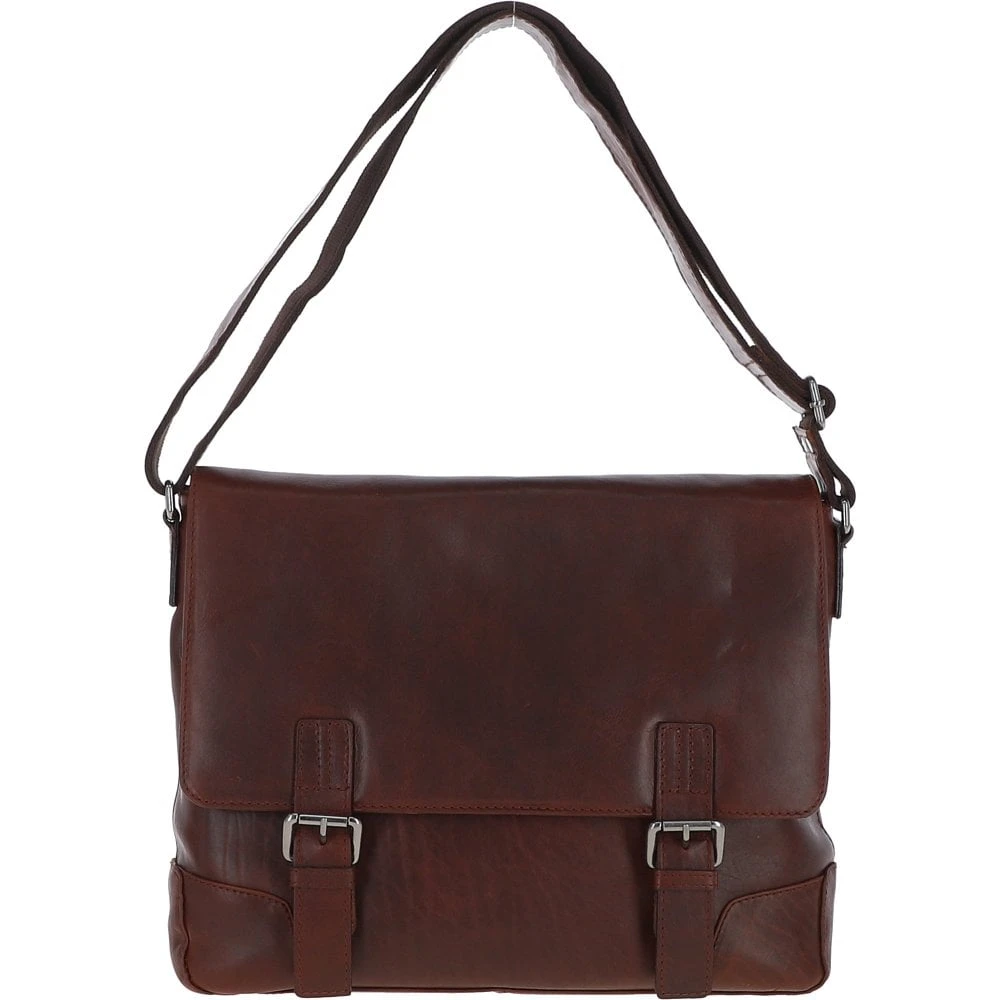 Mens Medium Leather Messsenger Bag Tan: Oscar