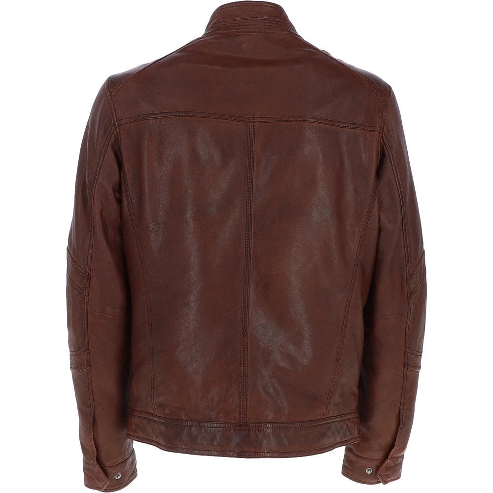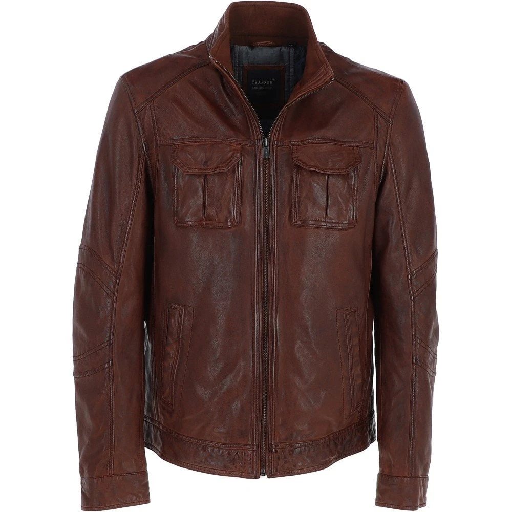 Trappers Jason leather jacket in red/brown, will instantly elevate your wardrobe, offering both style and warmth.