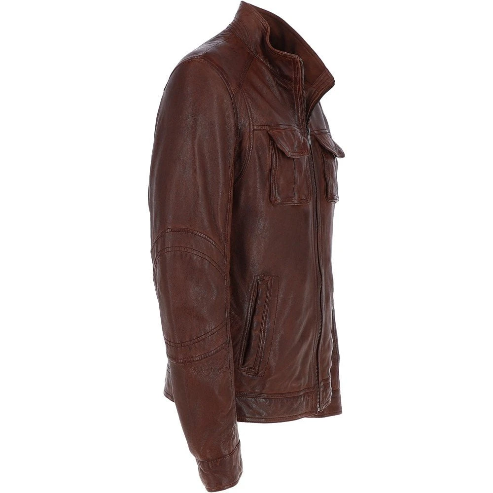Trapper Mens Nappa Leather Jacket Red/Brown: Jason | Coats And Jackets By Leather Company
