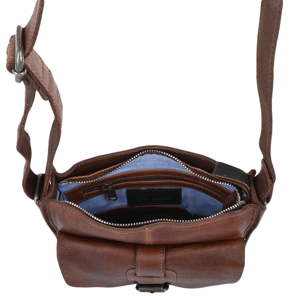 Mens Three Pocket Luxury Small Leather Flight Bag Tan : 4551