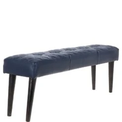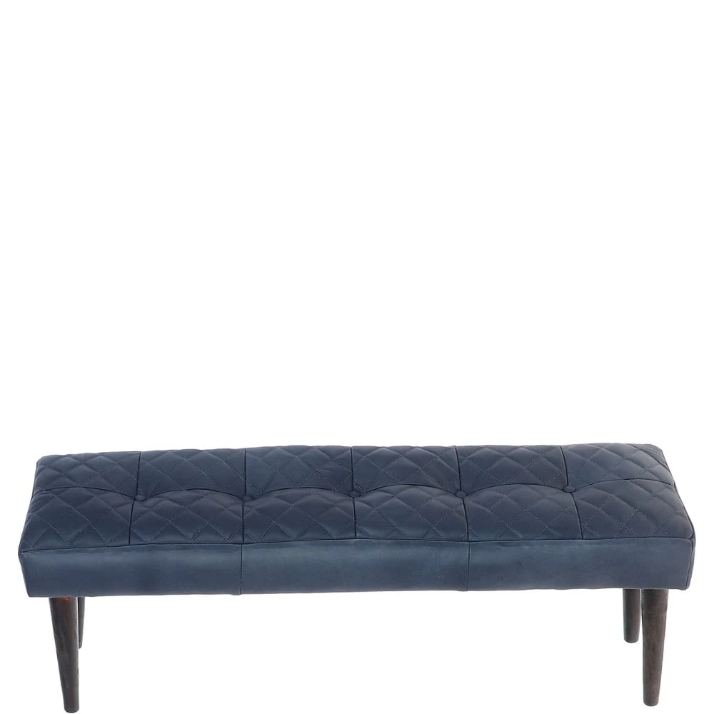 Minimalist Stainless Steel Frame Diamond Quilted Leather Bench Blue: AGC-11