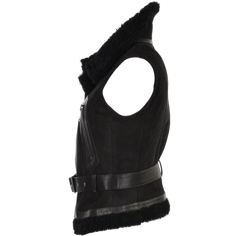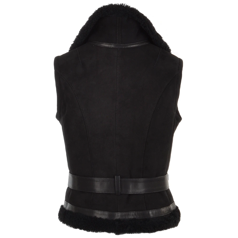 Shearling Leather and Suede Biker Gilet : Indiana