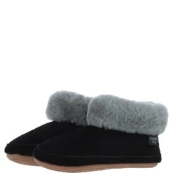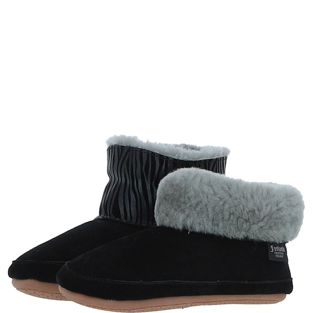 Women’s Sheepskin Slippers Black Leopard: Ladies Booties