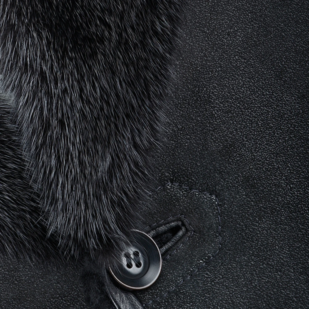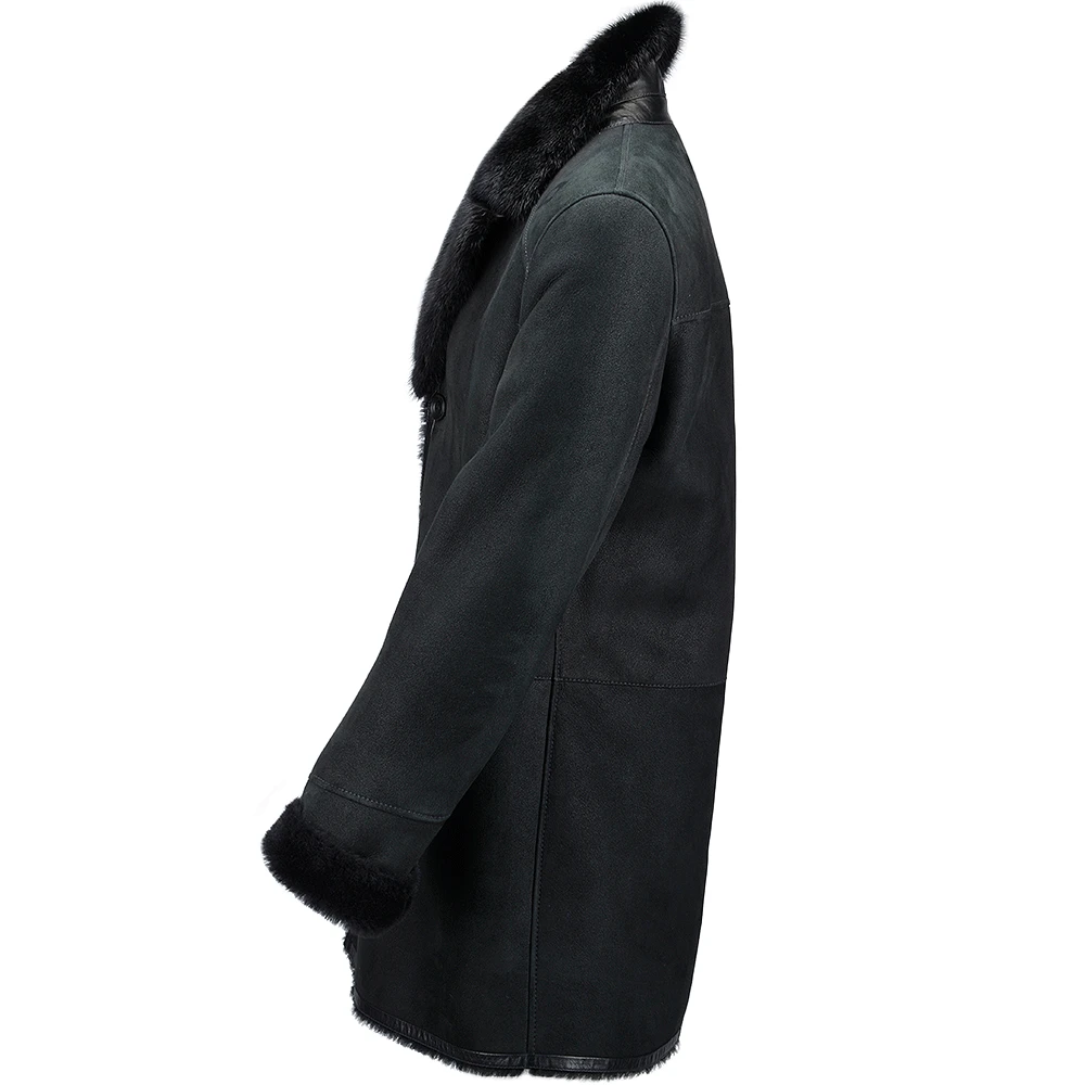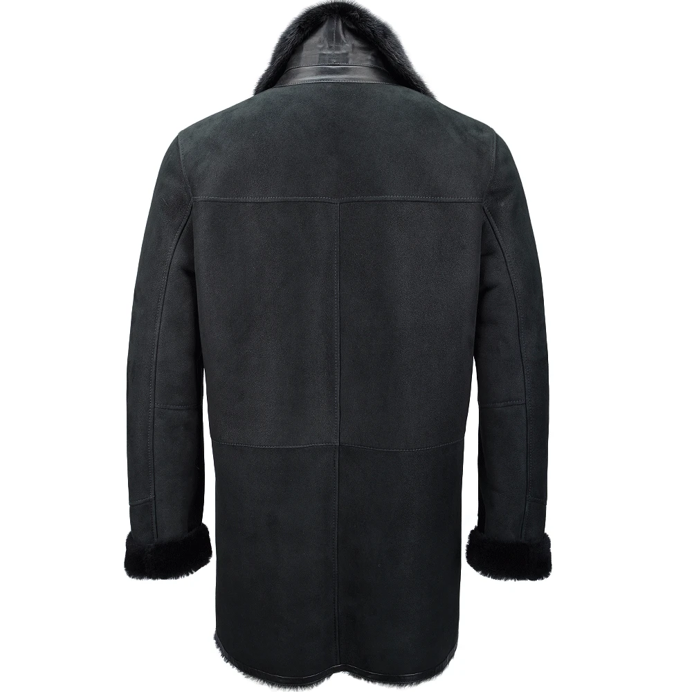 Mens Single Breasted Sheepskin Coat With Long Haired Lapel : Burbank