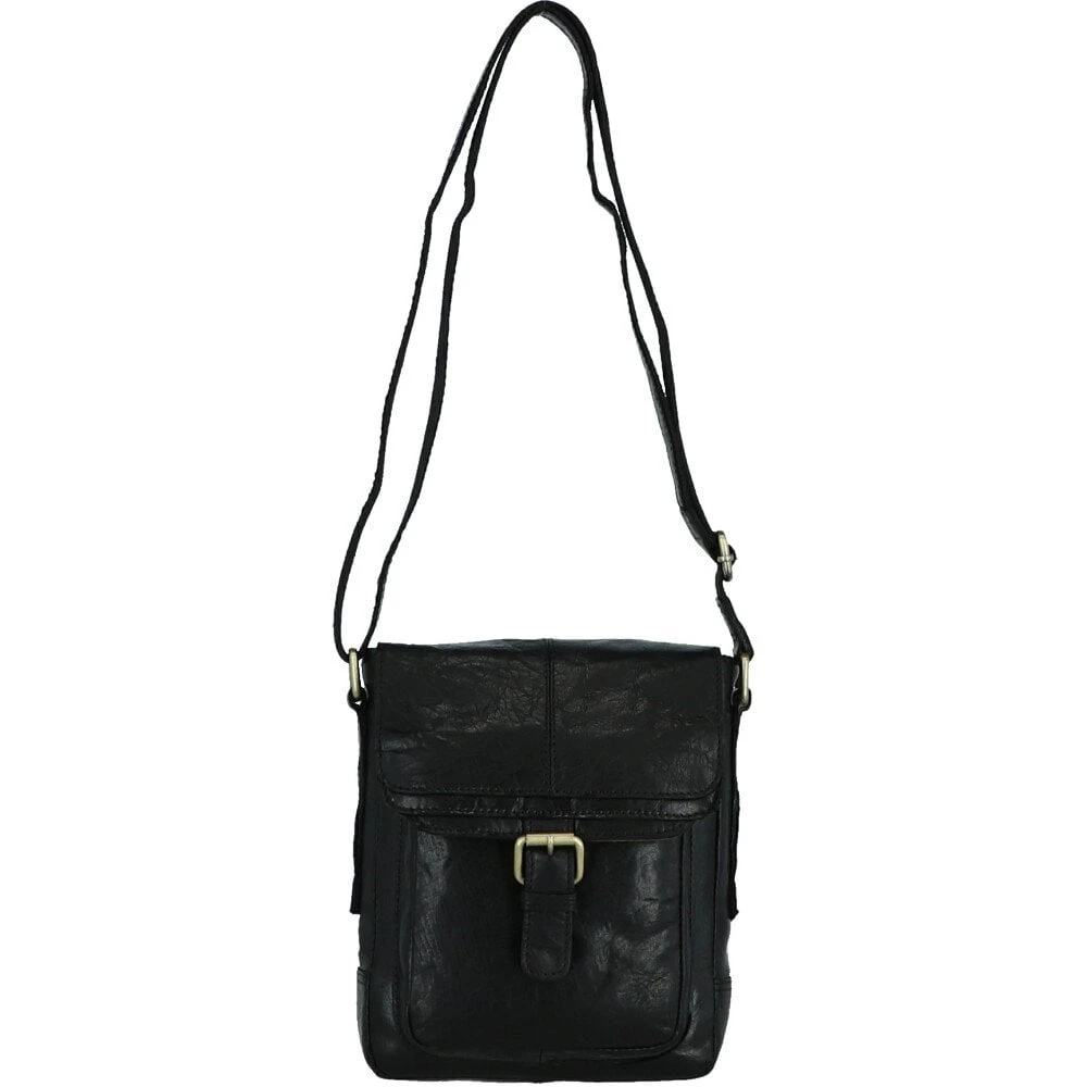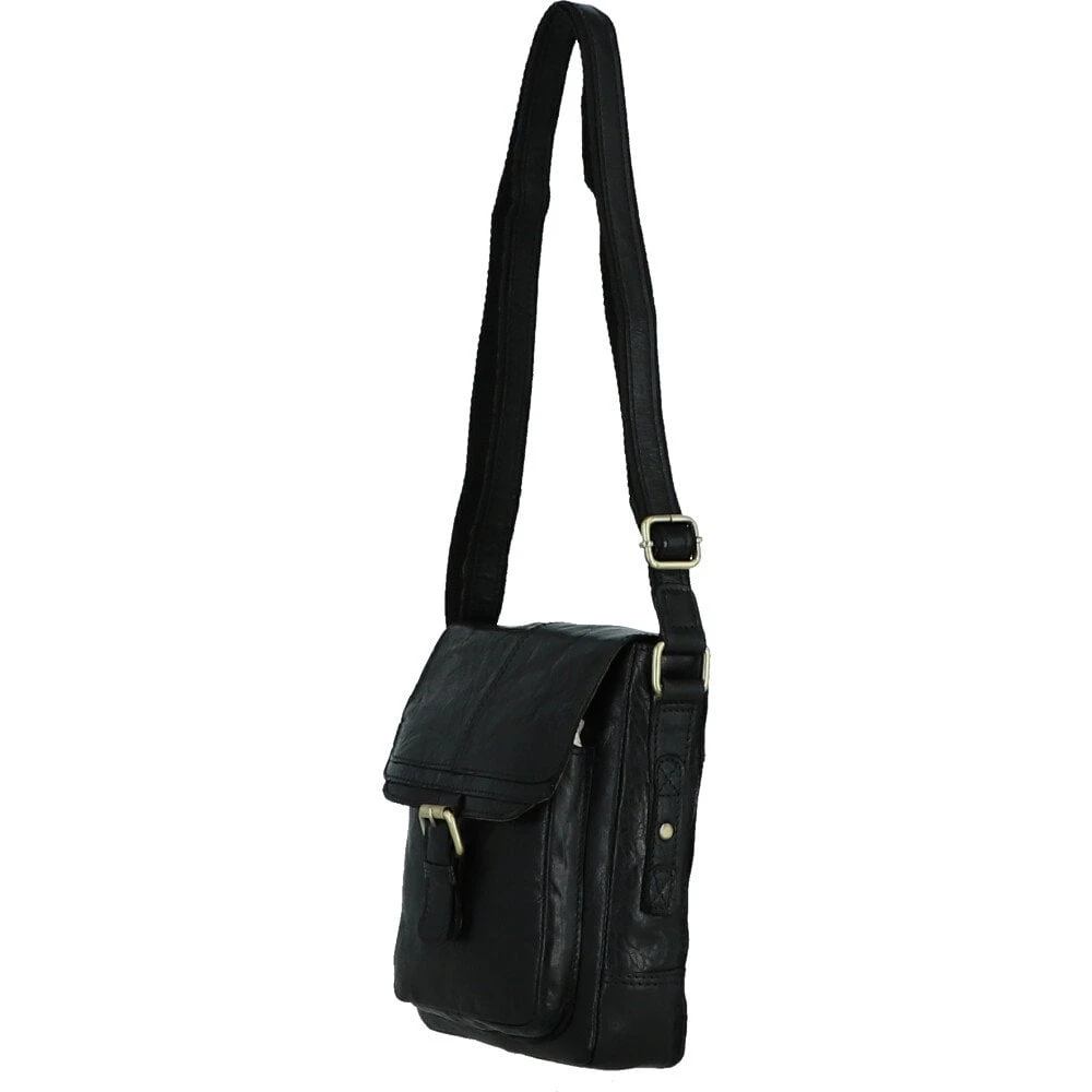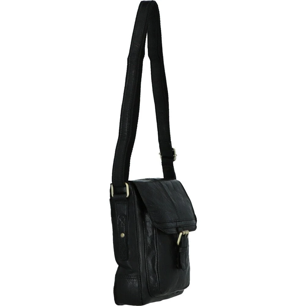 Mens Small Vintage Wash Leather Travel Bag Black: G-31