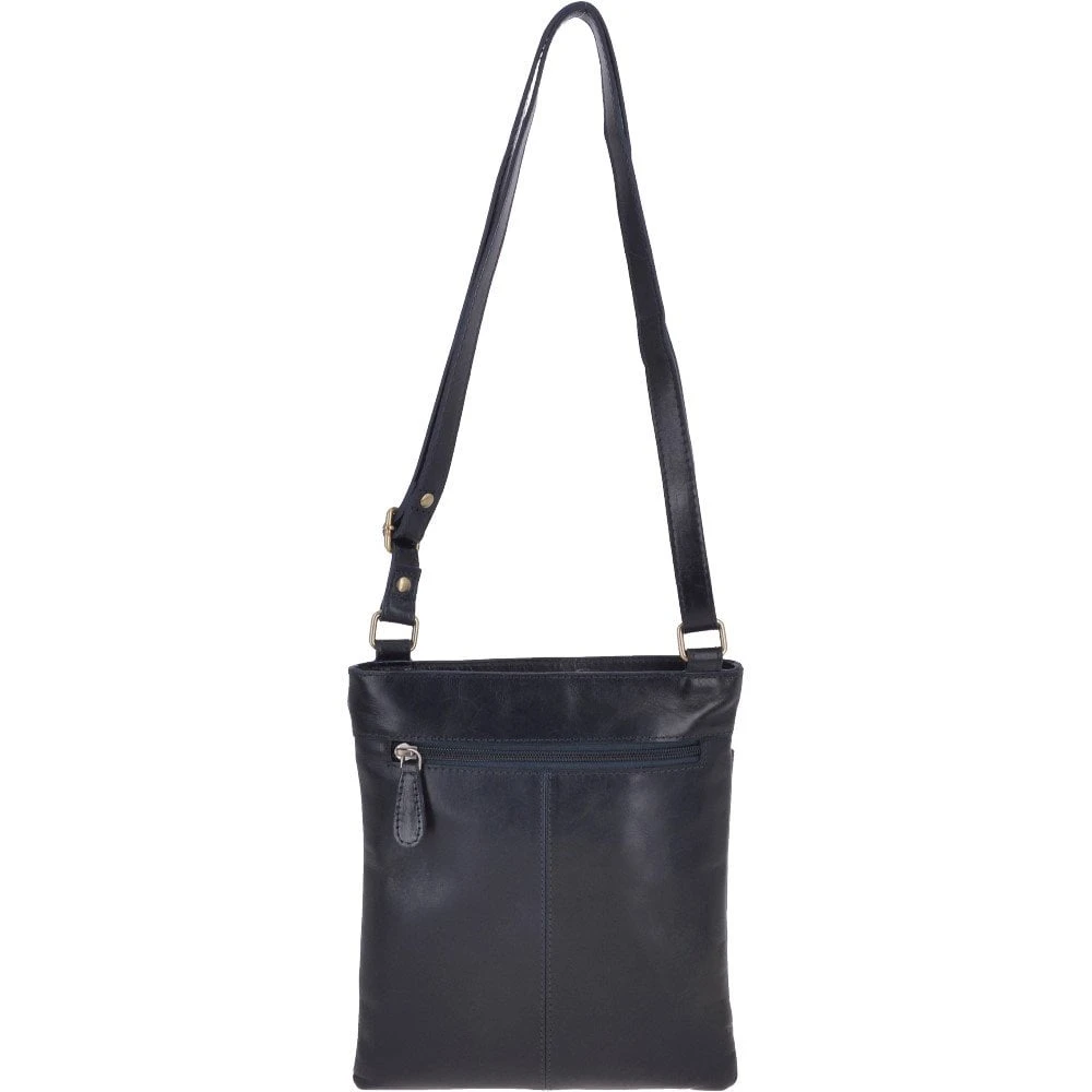 Small Zip Top Vegetable Tanned Leather Cross Body Bag Navy : V-20