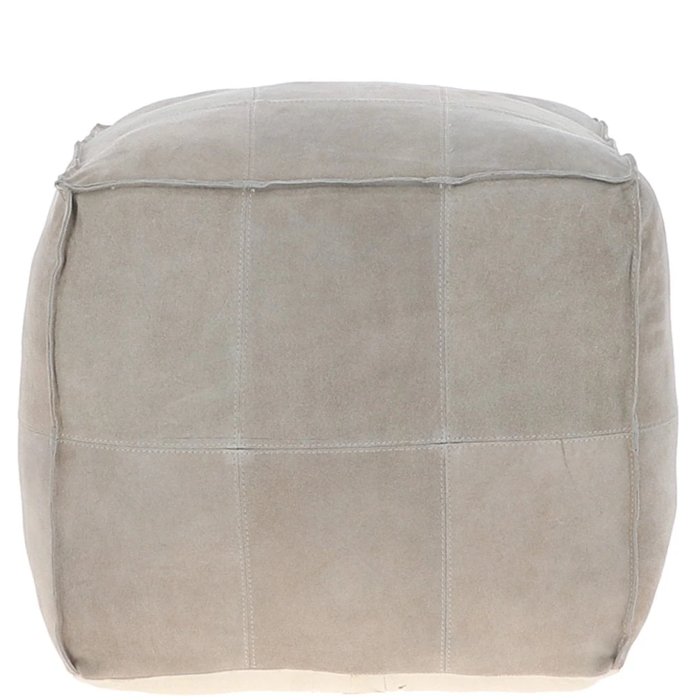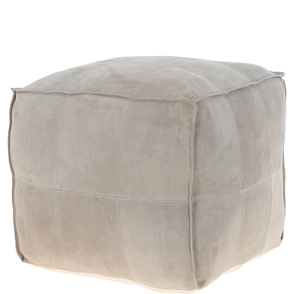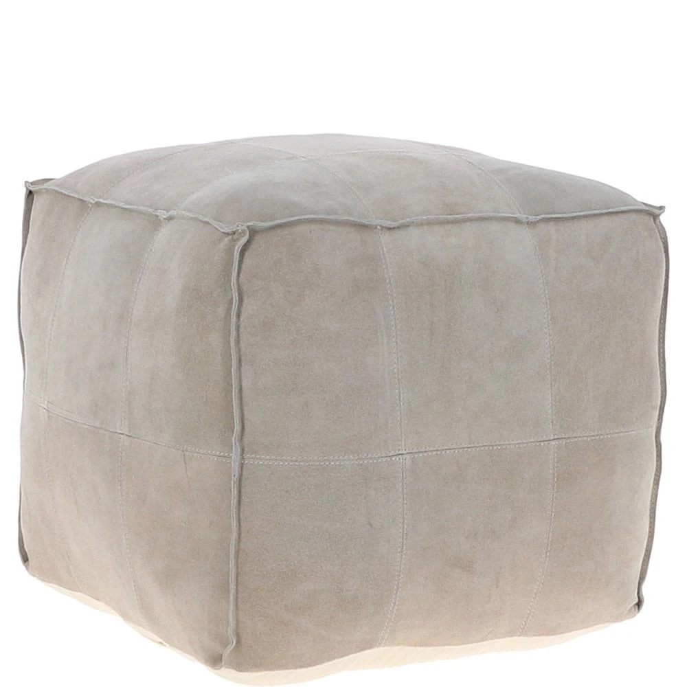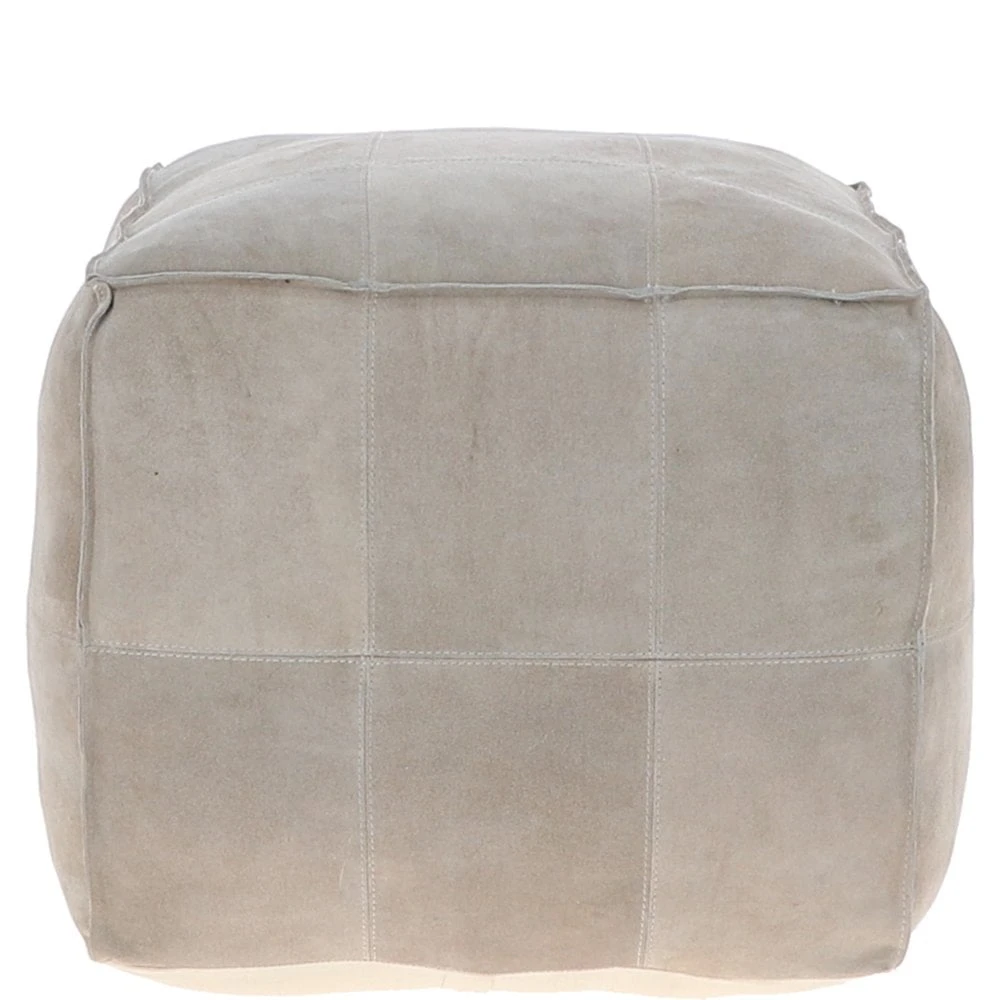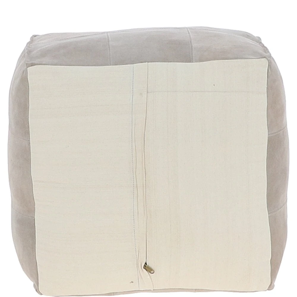 Suede Leather Square Boho Pouffe Off-White: AGC-03
