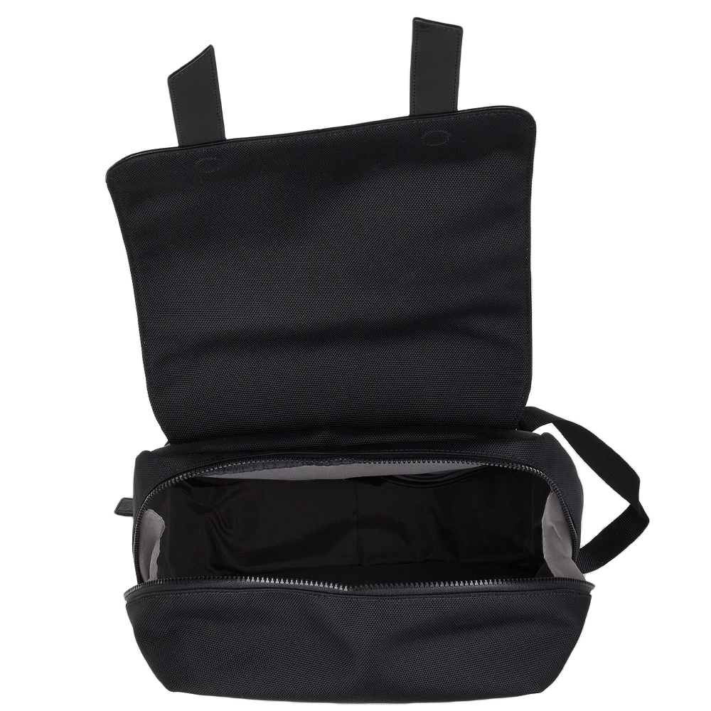 Part of the Bridge B Go range, designed for the organised traveller. Secure, stylish and with added features for organising your travel gear in a effortless manner. Crafted from robust hard wearing textured waterproof fabric, with part black Italian leather trims Comes maximum packing space with external slip pockets and internal pockets for small laptop, ipad, phone. The additional easy carry top and easy grab brown leather handle feature