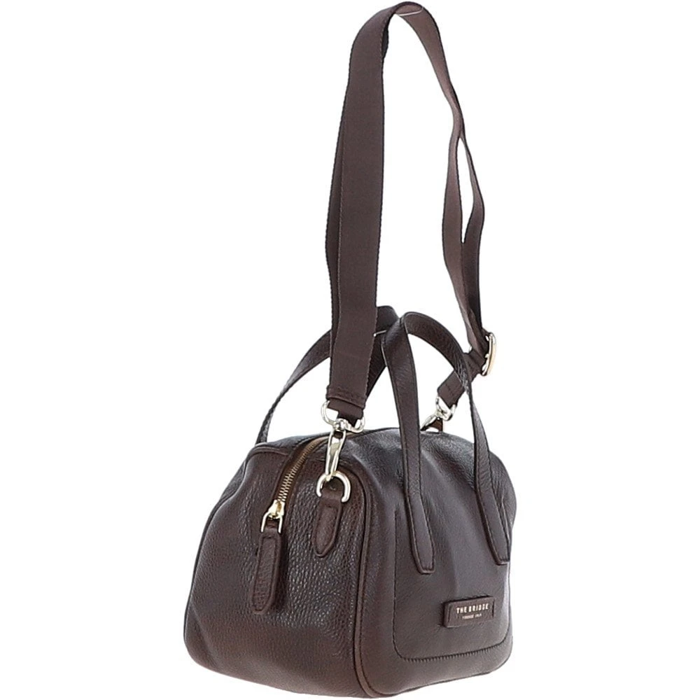 Made from Italian leather with a handcrafted finish. The Bridge medium ladies leather shoulder bag is coloured in brown with The Bridge logo coloured in gold. Expect top zip opening. Open to find a main section and two slip pockets for all your essentials.