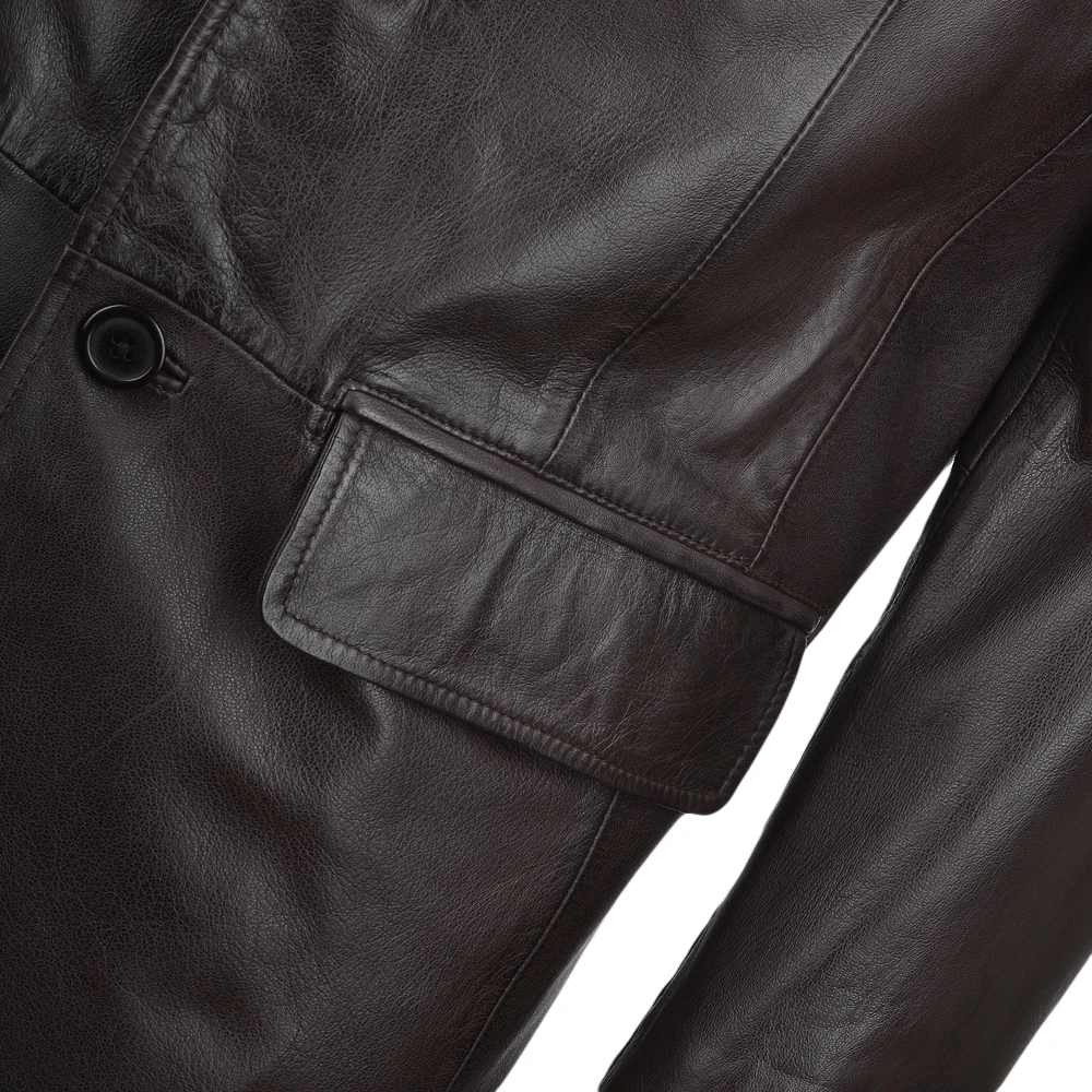 For enduring style and a confidence care free appearance the three button leather blazer with flap pockets, notch lapel and classic rear centre vent is the perfect choice for the man of all occasions. Expect attention to detail, beautiful leather, a flattering tailored fit with fine stitch detailing, in a hand waxed leather finish.
