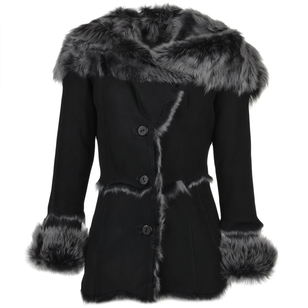 Toscana Long Haired Shearling Jacket With Large Hood Black : Muna