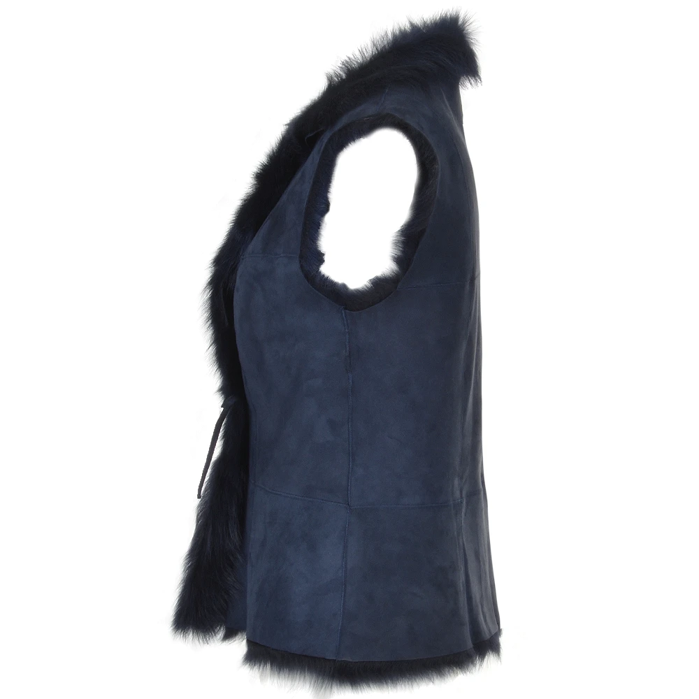 Toscana Suede Leather Gilet Navy : Kashmina