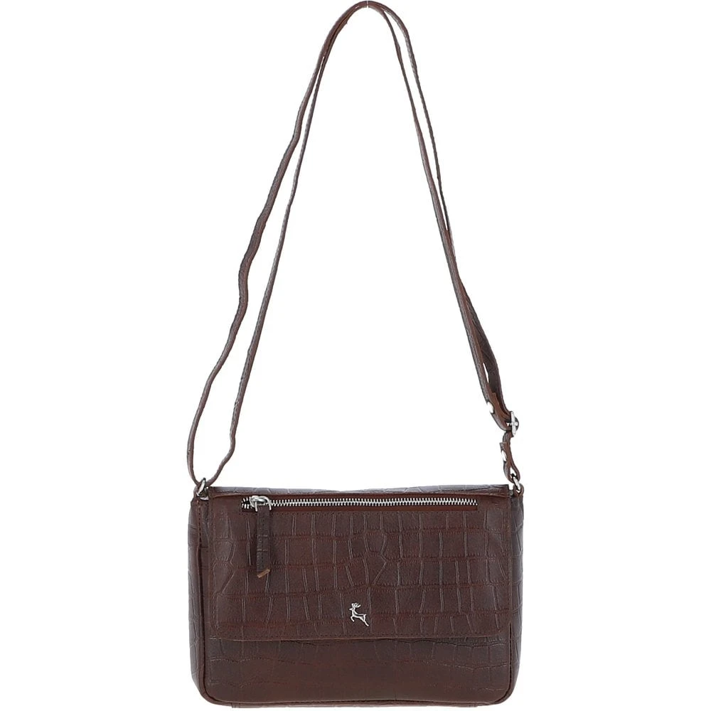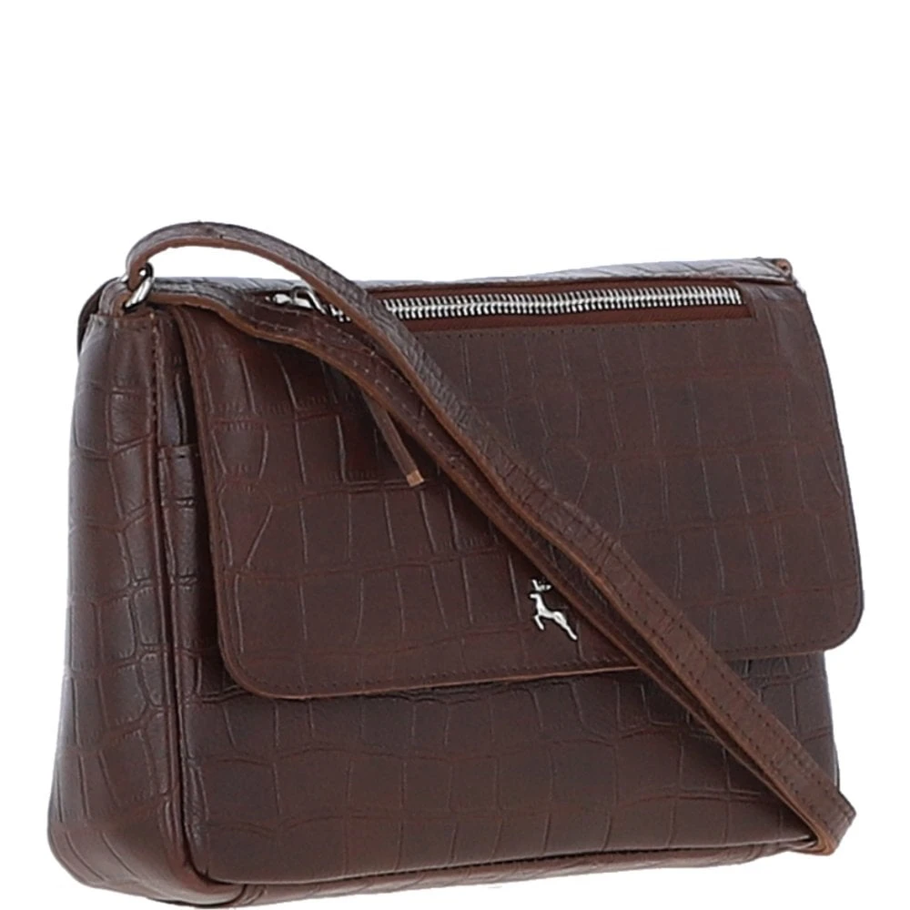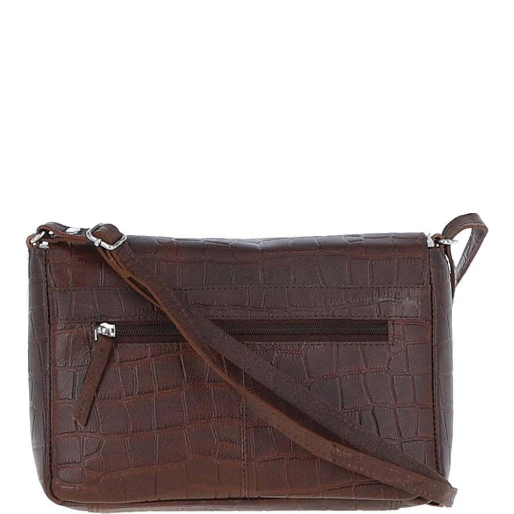 Valentina Flap Over Croc Print Real Leather Shoulder Bag Brandy/croc: MC5
