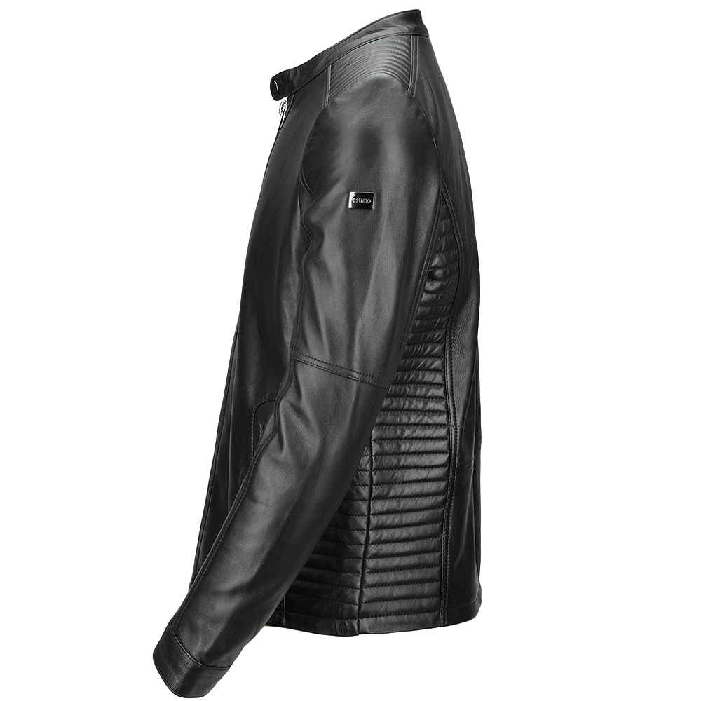 Bolster your look this season with this biker jacket from Estimo. Crafted in eco friendly vegetable tanned leather. Styled to a sleek and contemporary silhouette with fine biker ribbed piping detail to sides and shoulders. Finished with two zips to the outer and two on the inner body.